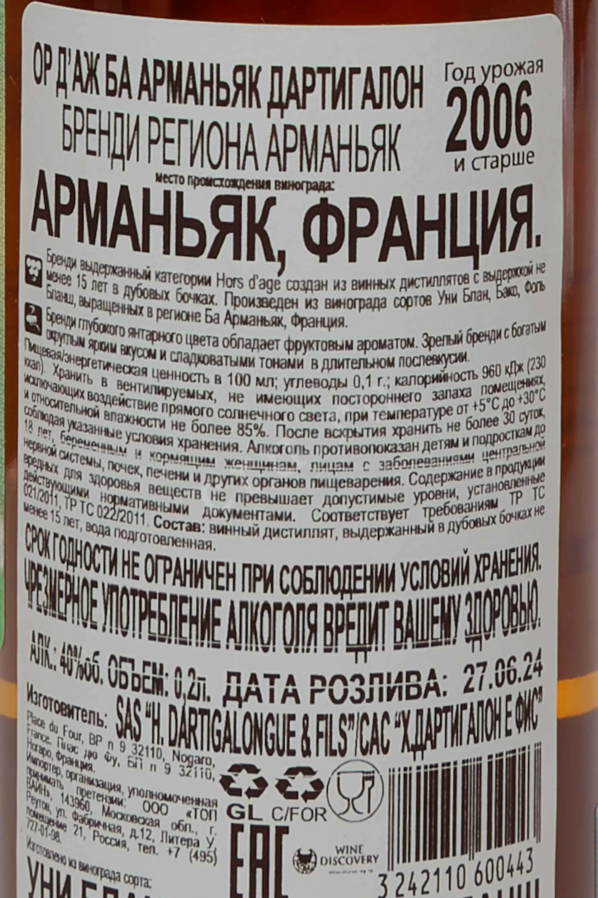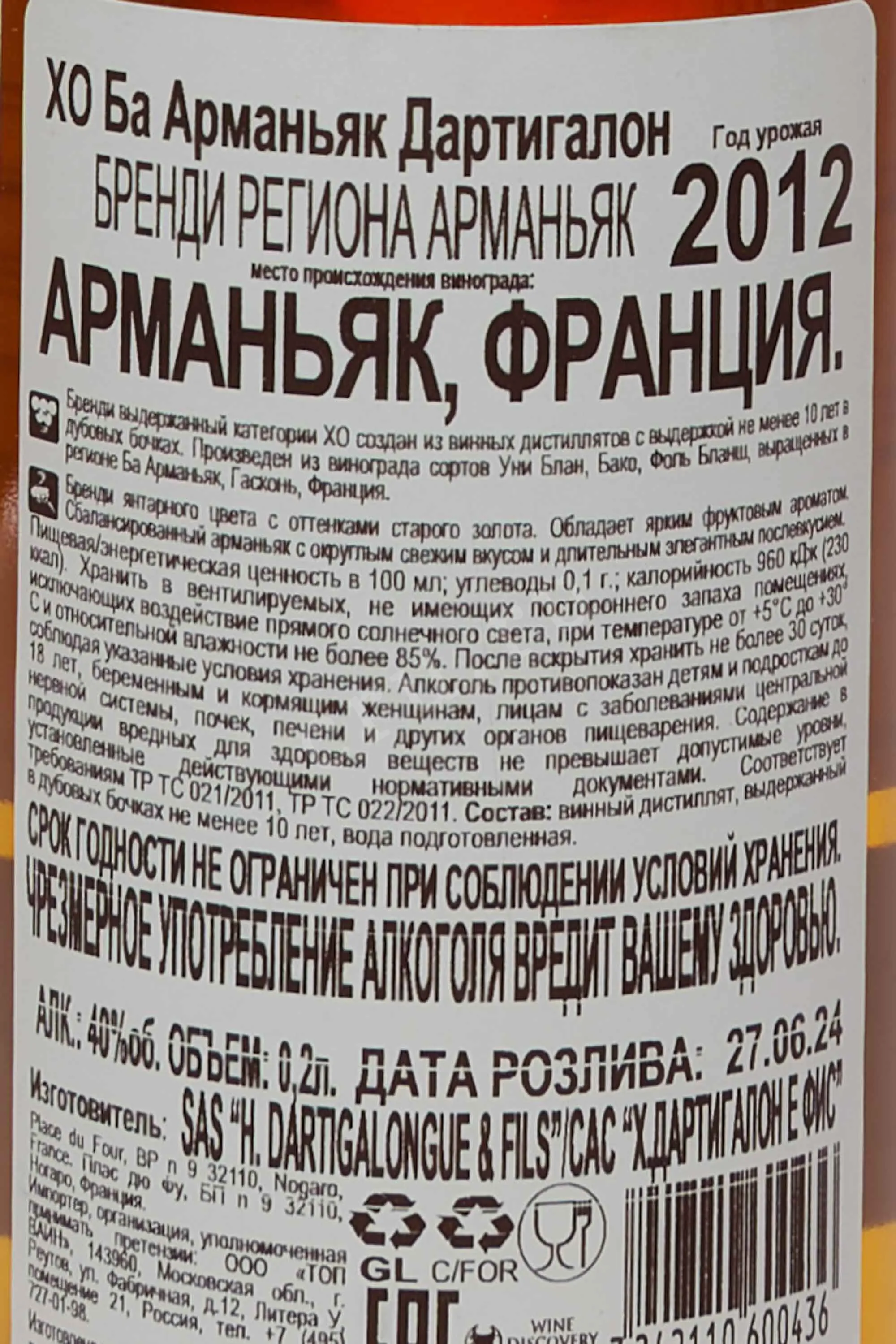 | 996773 | Dartigalongue Bas Armagnac XO | 1 | |