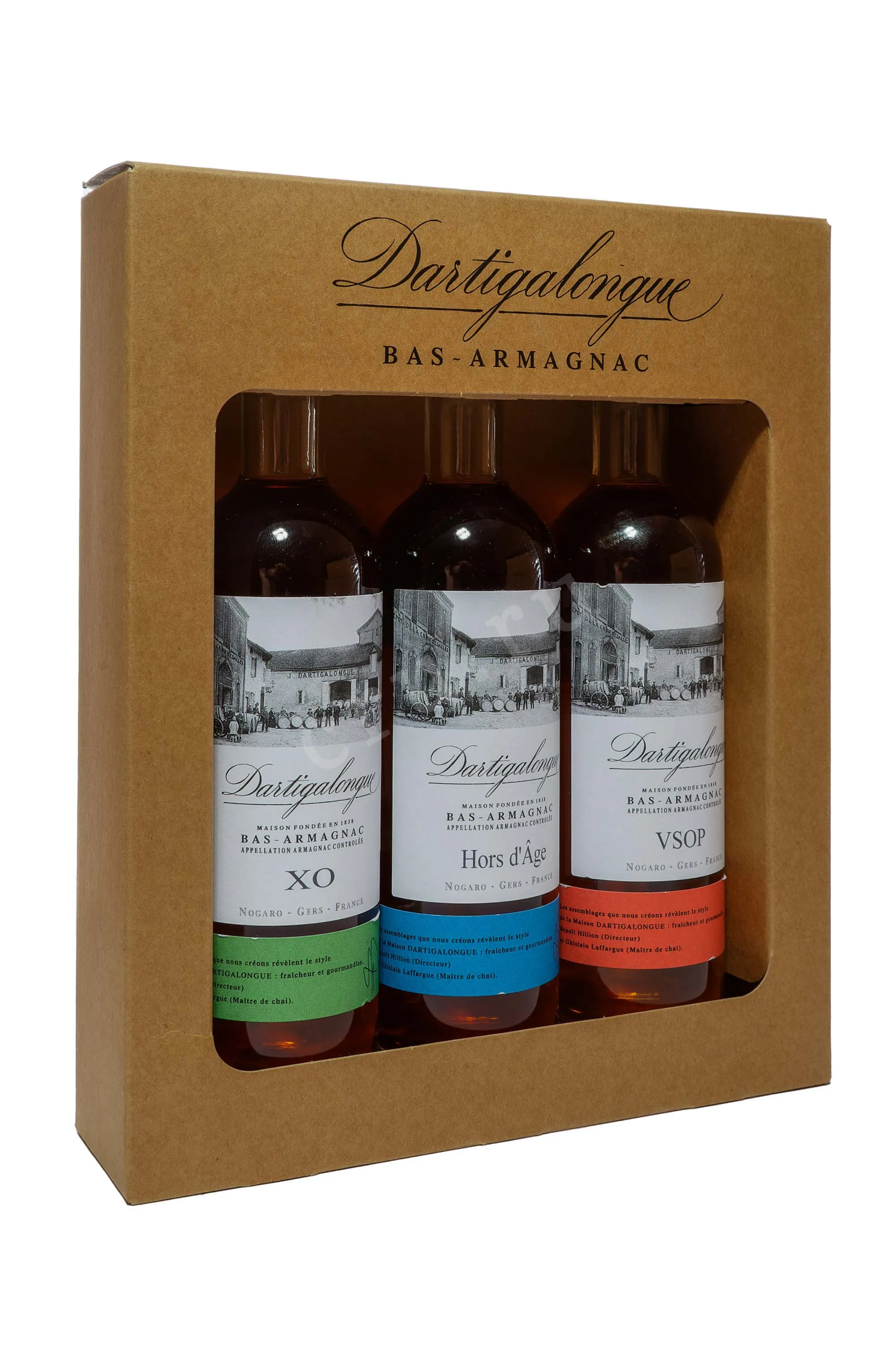 Арманьяк Dartigalongue set 3* in gift box — это уникальный набор выдержанного французского бренди, выпускаемый ограниченными сериями в трех бутылочках по 200 мл.