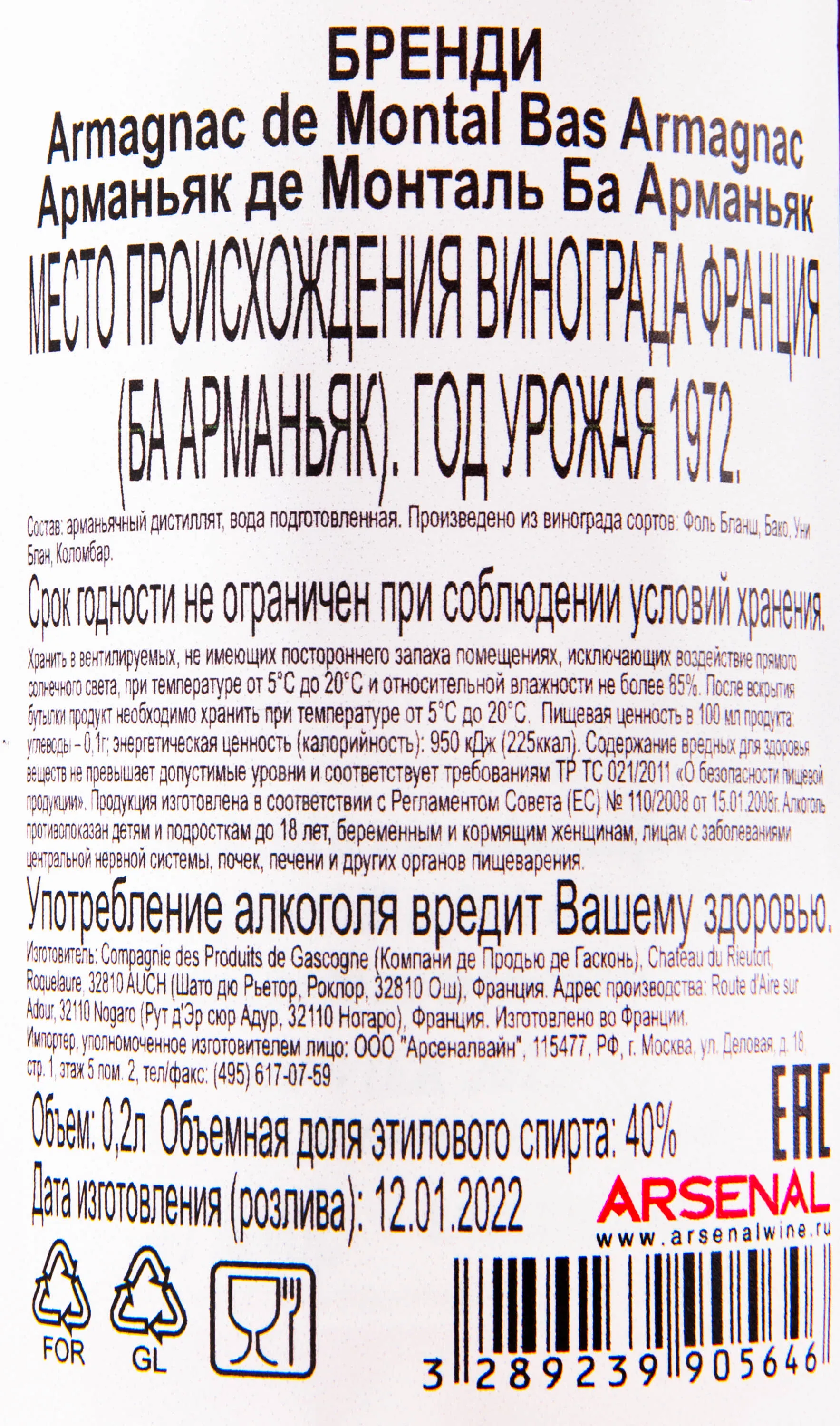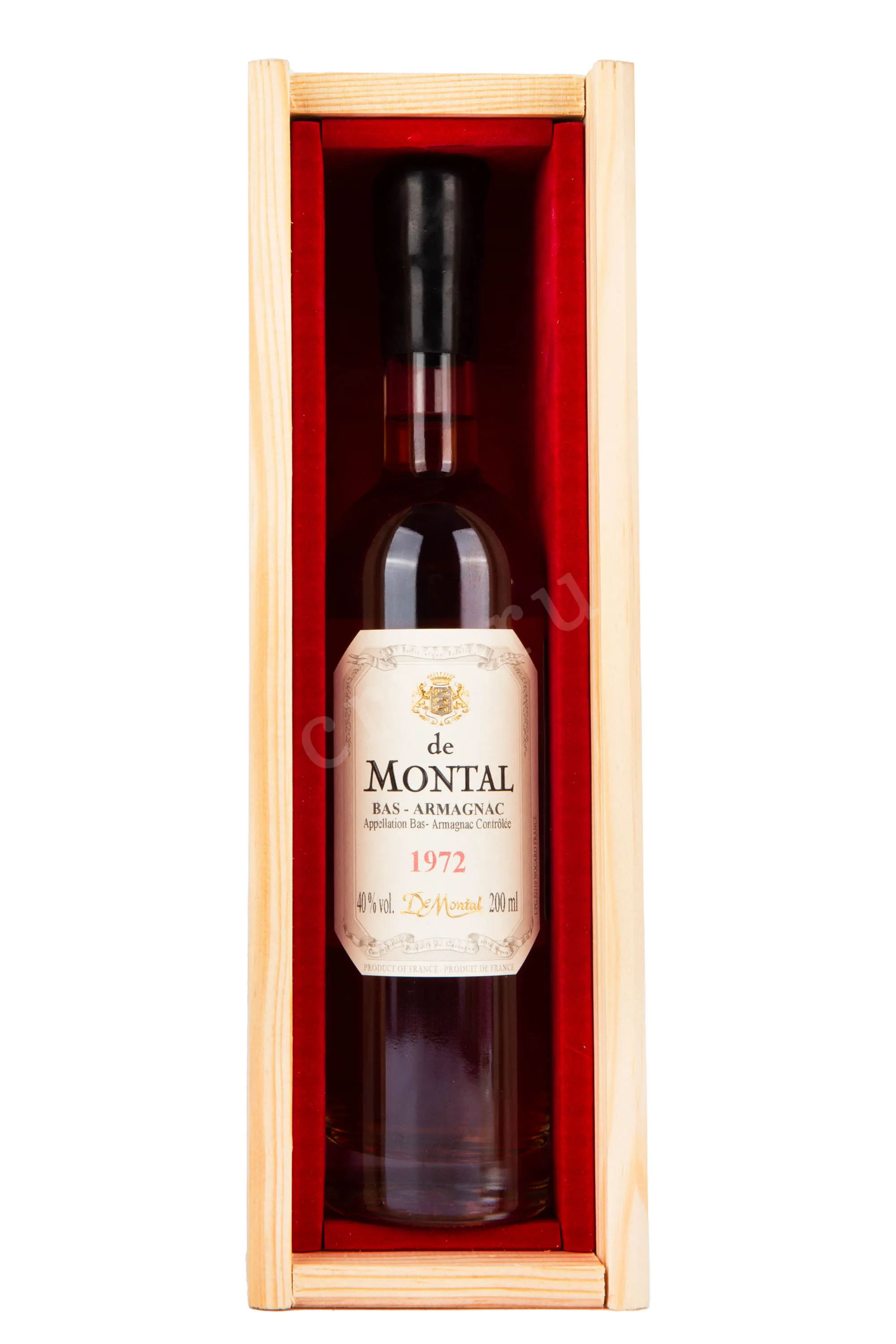 Арманьяк De Montal 1972 0.2 л – миллезимный armagnac Франции, который производится лучшими купажистами дома Де Монтал из отборного винограда урожая 1972 года, собранного в субрегионе Ба-Арманьяк. Изготавливается специальным методом дистилляции в трех перегонных колоннах. Многолетняя выдержка спиртов проходит в особых больших 400-литровых бочонках из белого дуба в течение 42 лет, в старинных погребах шато де Рьетор. Выпускается он в мини-формате для ознакомления со вкусоароматическими особенностями французского бренда. Продается в сувенирной деревянной коробке, станет незабываемым подарком для коллекционера-алкоминималиста и людей 1972 года рождения.