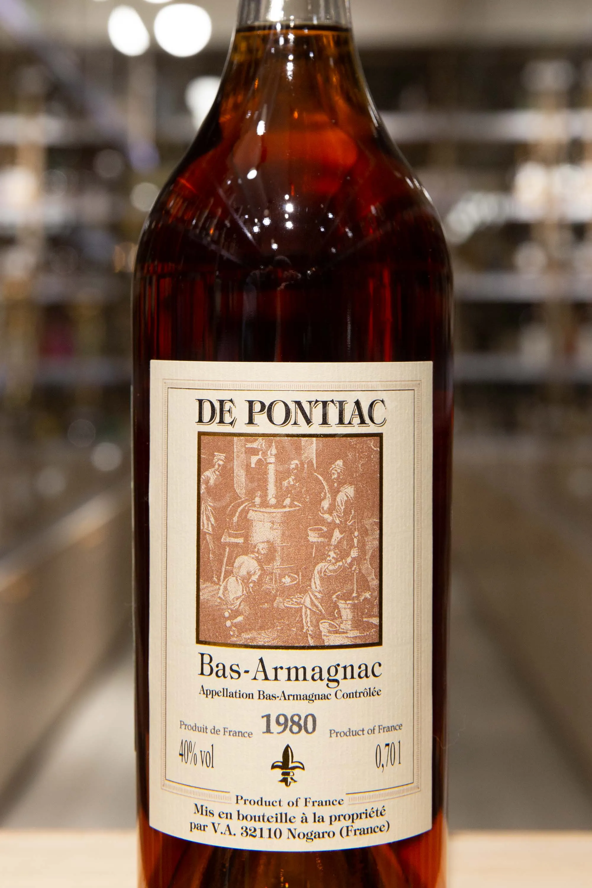 Арманьяк De Pontiac Bas Armagnac 1980 года 0,7 л в деревянной коробке является редким спиртным напитком, произведенном в знаменитом регионе на юго-западе Франции Ба-Арманьяке. Дистилляция осуществлялась традиционным методом в медных перегонных кубах с последующей выдержкой полученных спиртов в бочках из местного гасконского дуба. Урожай 1980 года был непростым из-за погодных условий, что сделало винтаж особенно ценным для коллекционеров. Выдержка в течение нескольких десятилетий в бочках добавила напитку сложность и утончённость. Бутылка упакована в деревянную коробку, подчёркивающую подарочный статус арманьяка и его эксклюзивность.
