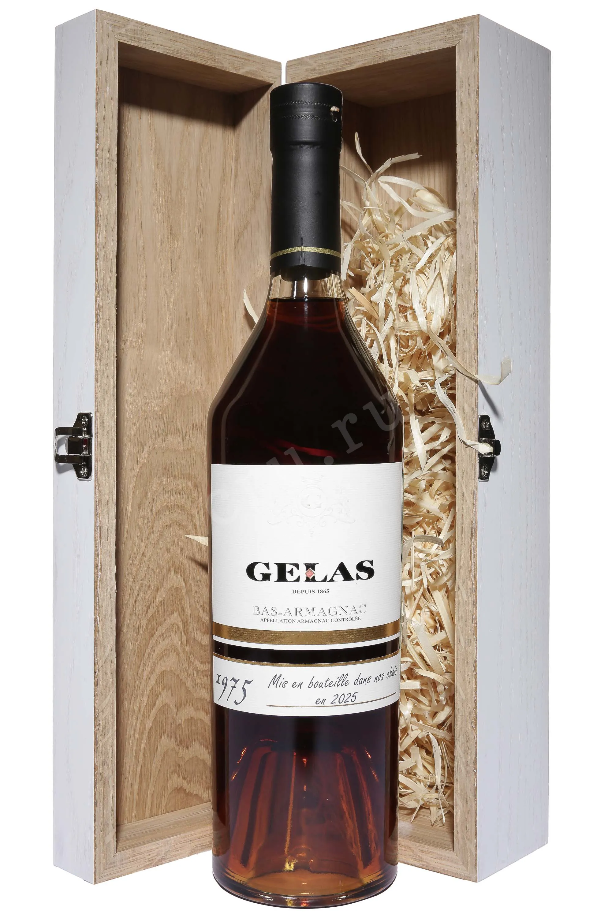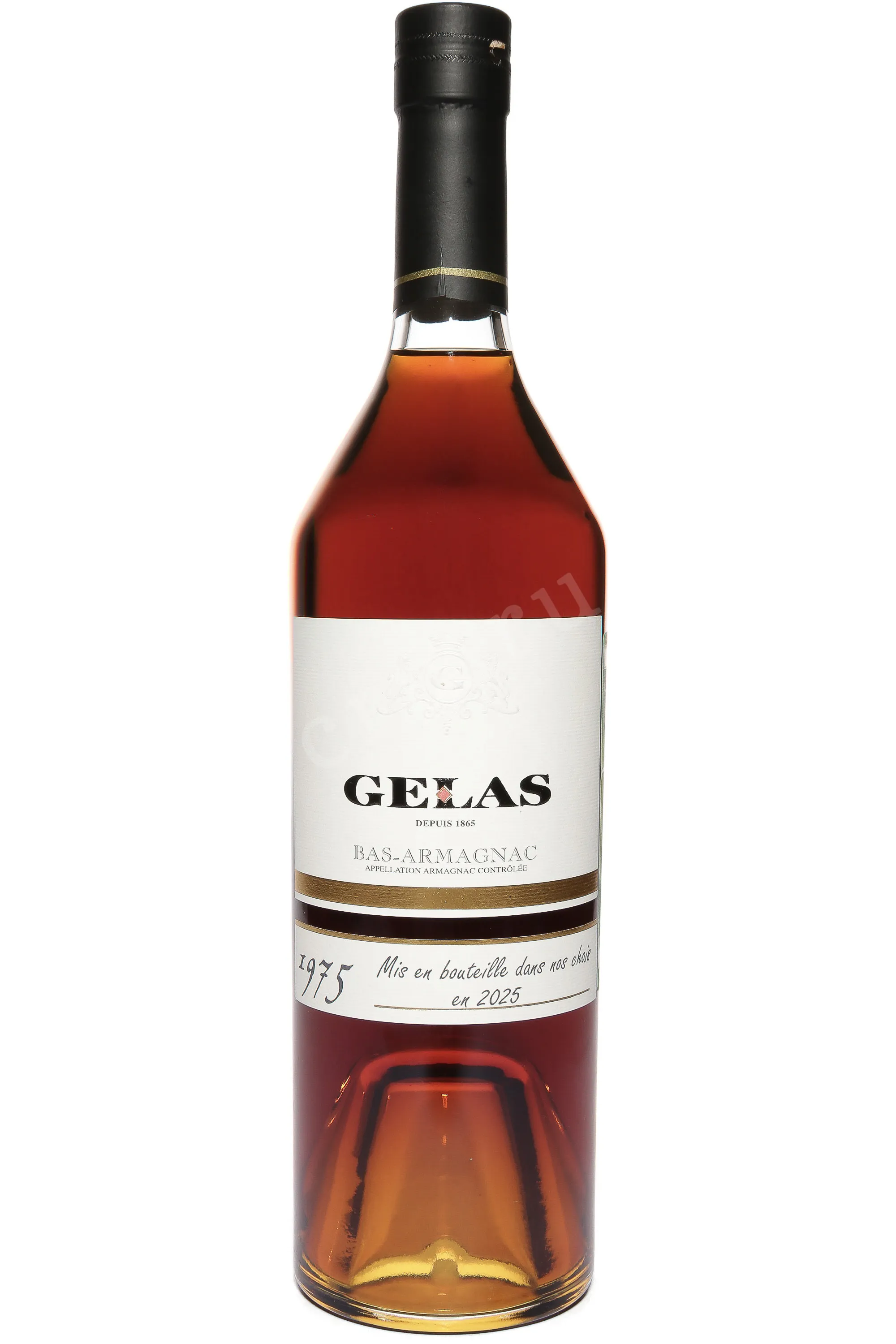 Арманьяк Gelas 1975 0,7 л — выдержанный винтаж из региона Ба-Арманьяк, произведённый домом Maison Gelas, основанным в 1865 году. Дистиллят был заложен в дубовые бочки в 1975 году и разлит по бутылкам спустя более 40 лет выдержки. Производство осуществлялось традиционным методом однократной перегонки в медных аламбиках, что позволяет сохранить богатство аромата и вкуса. Выдержка проходила в бочках из черного гасконского дуба, придающего напитку насыщенный цвет и многогранный букет. Арманьяк обладает крепостью 40% и выпускается ограниченным тиражом, что делает его ценным экземпляром для коллекционеров.