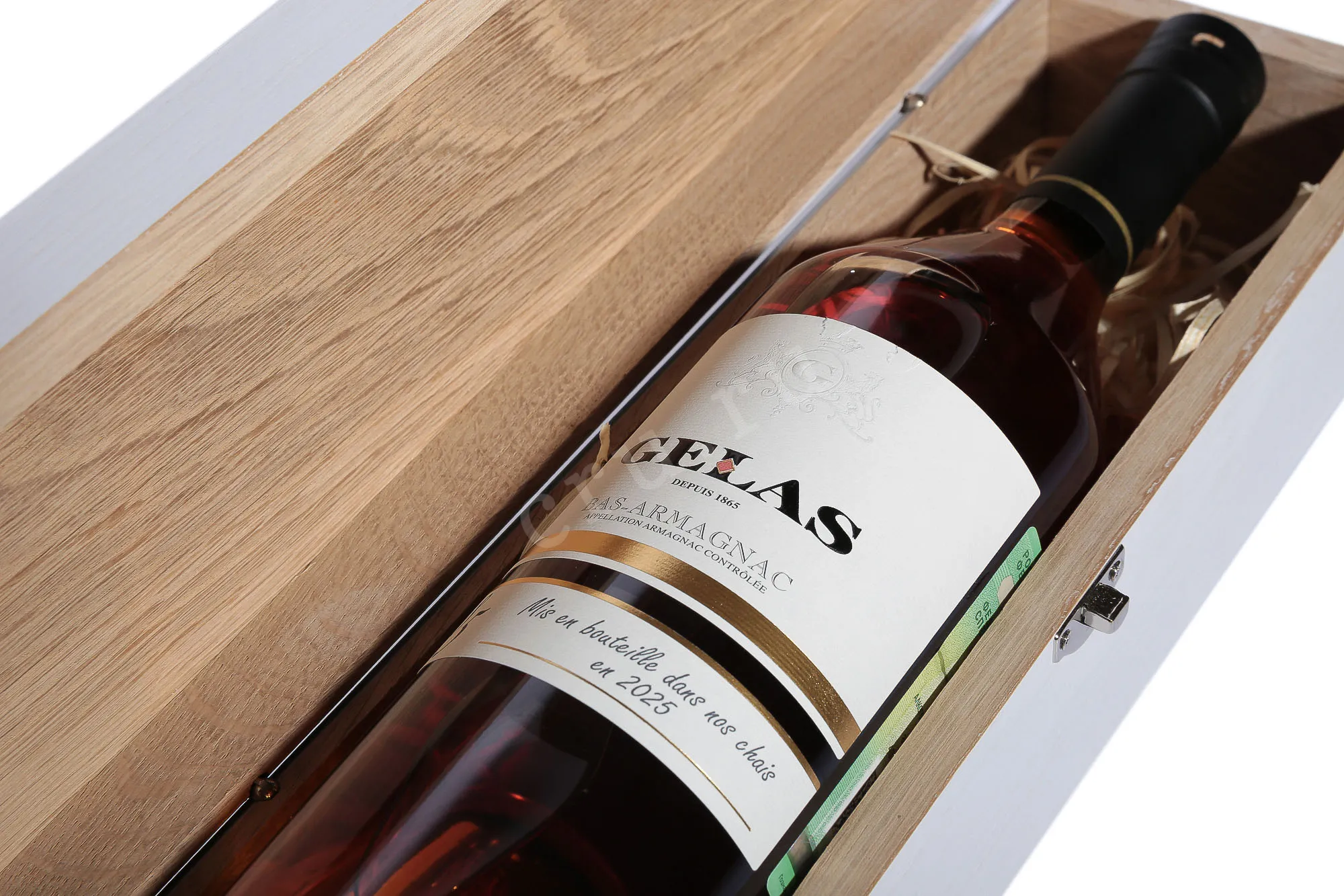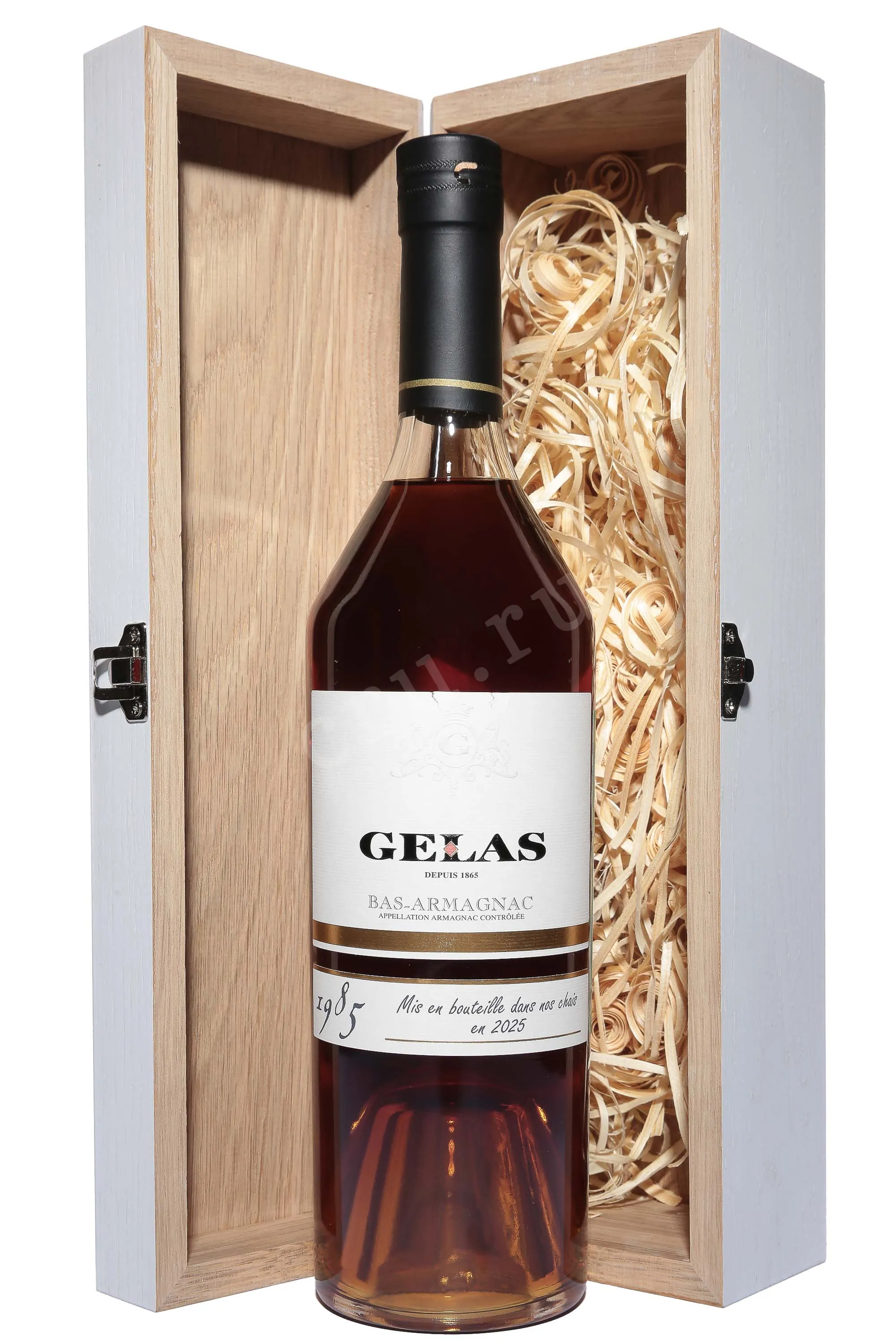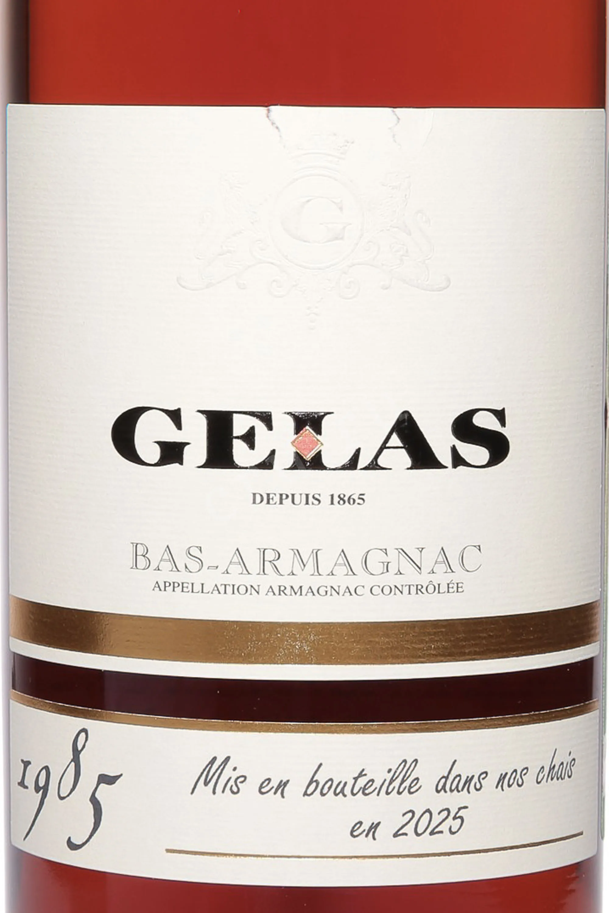 Арманьяк Gelas 1985 0,7 л — элитный винтажный напиток, изготовленный в регионе Ба-Арманьяк во Франции. Урожай 1985 года отличался удачными погодными условиями, что позволило собрать виноград высокого качества. Арманьяк произведён методом однократной перегонки в медных кубах. Выдержка проходила более 30 лет в бочках, сделанных из местного гасконского дуба. За этот период напиток приобрёл характерный многослойный вкус и выразительный аромат. Арманьяк Желас 1985 относится к категории коллекционных образцов и высоко оценивается экспертами за гармоничность и редкость винтажа.
