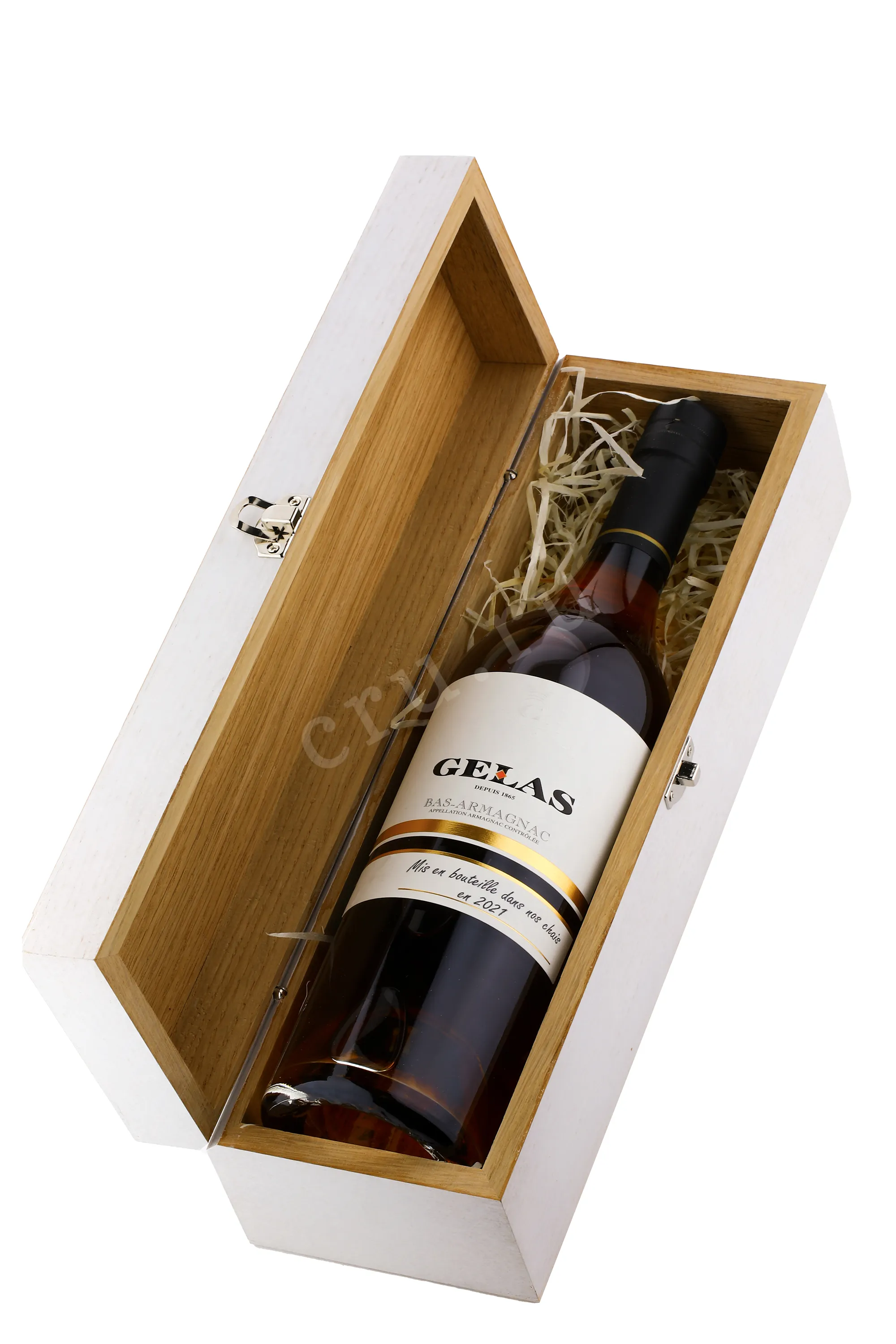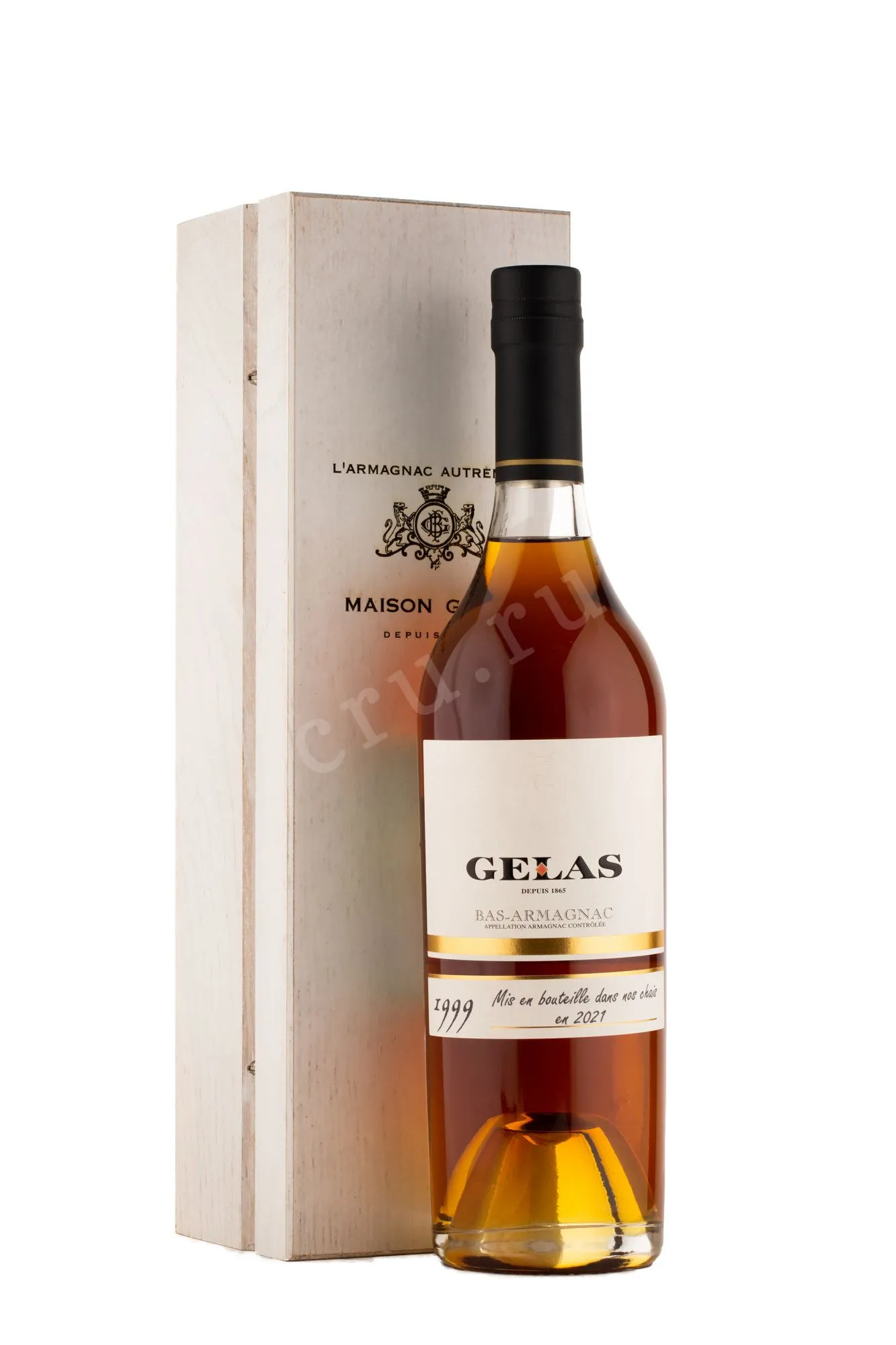 Арманьяк Gelas 1999 г. 0,7 л в деревянной упаковке — классический французский бренди от старинного гасконского дома, ведущего свою историю с 1865 года. Для напитки создания использовались популярные в Нижнем Арманьяке сорта винограда. Урожай вырастили на «рыжих песках» – богатых железистыми соединениями песчано-глинистых почвах, характерных для этого терруара. В 1999 году погодные условия в регионе были благоприятными – тёплое лето и умеренные осадки обеспечили высокий уровень сахара в ягодах, что способствовало получению насыщенного и сбалансированного спиртов. Дистилляция проводилась традиционным методом с использованием аламбика, после чего следовала выдержка в дубовых бочках на протяжении 10 с лишним лет.