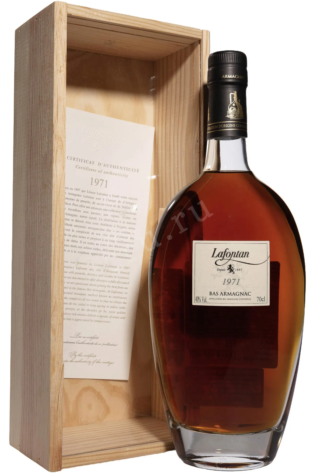 Арманьяк Lafontan 1971 год 0.7 л — редкий миллезимный алкоголь с выраженной зрелостью и классическим характером. Он создан в регионе Ба-Арманьяк с применением традиционной однократной непрерывной перегонки в медном аламбике, что позволяет сохранить естественную структуру спиртов. Они долгие годы проводят в бочках из гасконского дуба, где развиваются медленно и без вмешательства. Дом Лафонтан выпускает свои миллезимы без купажирования, поэтому данный арманьяк точно отражает особенности урожая 1971 года. Этот год дал концентрированные спирты с высоким потенциалом длительной выдержки. Раритетный винтаж, выпущенный маленьким тиражом, был высоко оценен на профильных дегустациях за чистоту стиля, стабильное качество и уникальность .