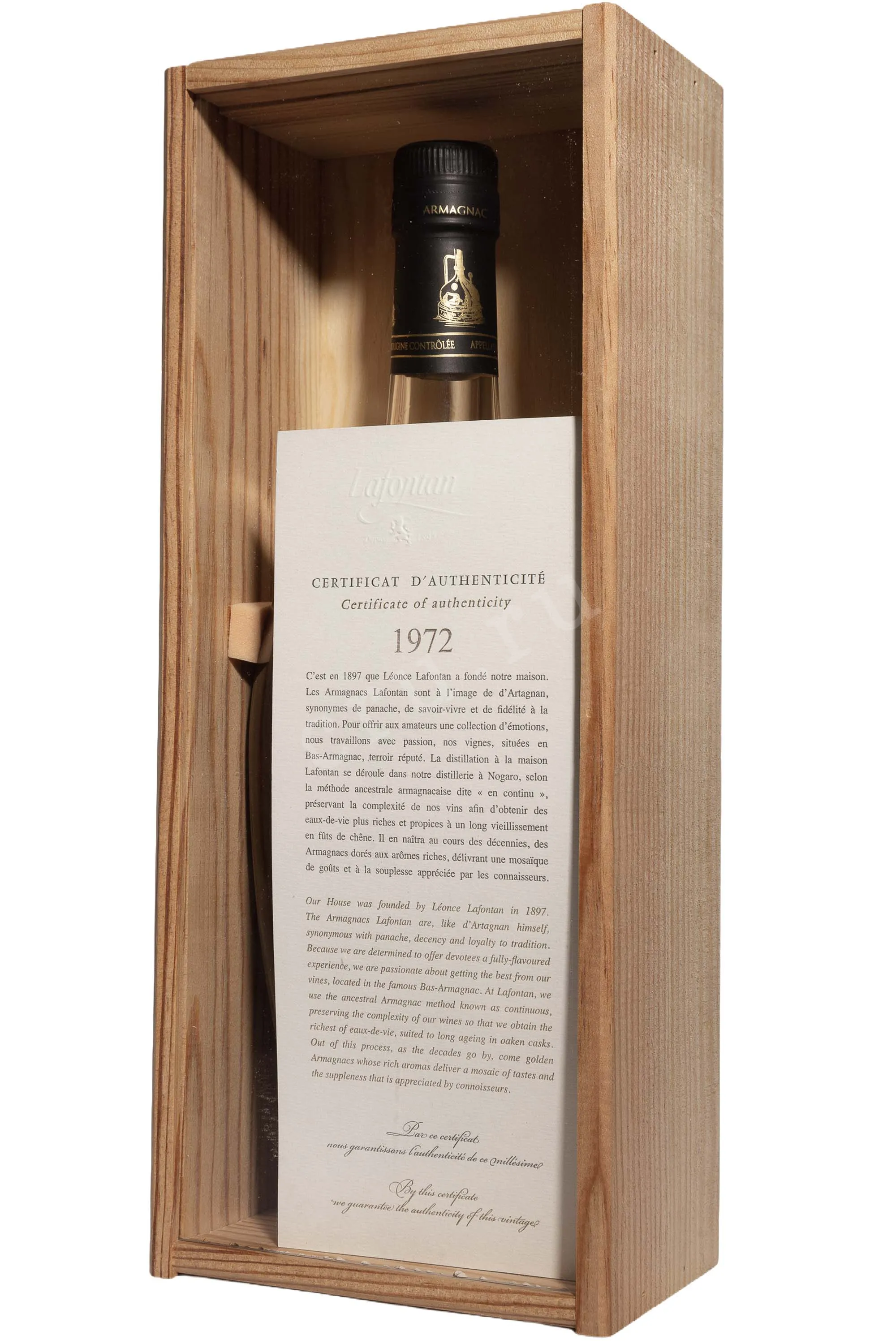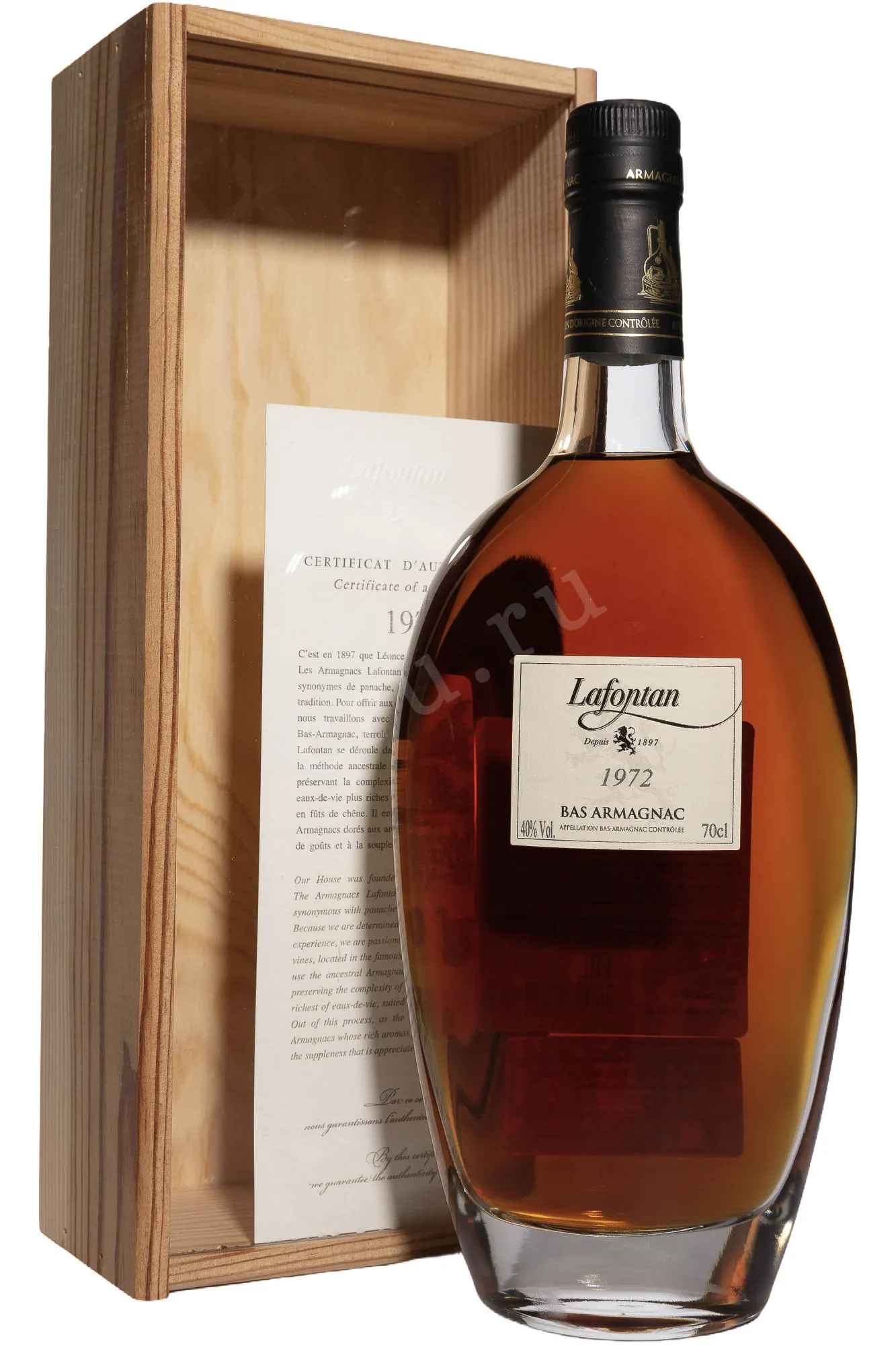 Арманьяк Lafontan Millesime 1972 год 0.7 л — раритетный винтаж с выраженным характером долгой выдержки и спокойной, зрелой стилистикой. Создан из винограда одного года урожая, без смешивания дистиллятов разных лет, что позволяет точно передать особенности миллезима. Перегонка проводилась традиционным методом в медном аламбике, после чего арманьяк 53 года созревал в дубовых бочках. За годы выдержки структура стала мягкой и округлой, а аромат — многослойным и глубоким. Дом Lafontan известен внимательным отношением к старым запасам и минимальным вмешательством в процесс созревания. Миллезим 1972 года ценится за редкость и возраст, а подобные релизы часто рассматриваются как коллекционные и высоко оцениваются любителями классического арманьяка.