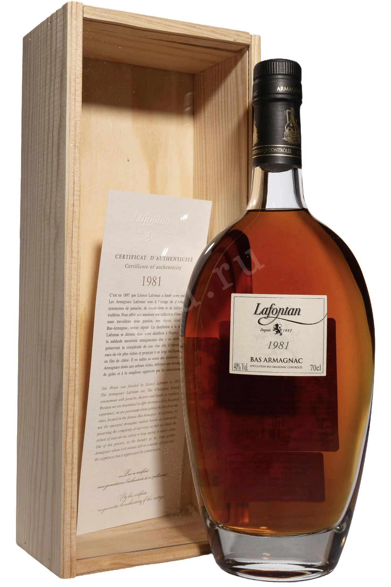 Арманьяк Lafontan 1981 год 0.7 л — роскошный подарок для ценителя и коллекционера. Этот редкий французский миллезим премиального уровня можно вручить на юбилей человеку, родившемуся в год урожая. Напиток произведён методом непрерывной перегонки в аламбике классического типа, что позволяет сохранить природную структуру дистиллята. Он был заложен на длительную выдержку в дубовых бочках из гасконского дуба, где он медленно развивался в течение 44 лет. Такой подход позволил сформировать сложный профиль без резких акцентов. Урожай 1981 года считается удачным для региона, что подтверждается стабильным качеством сохранившихся миллезимов. Арманьяки дома Лафонтан ценятся за аутентичность и отсутствие купажирования. Каждый винтаж разливается ограниченным тиражом.
