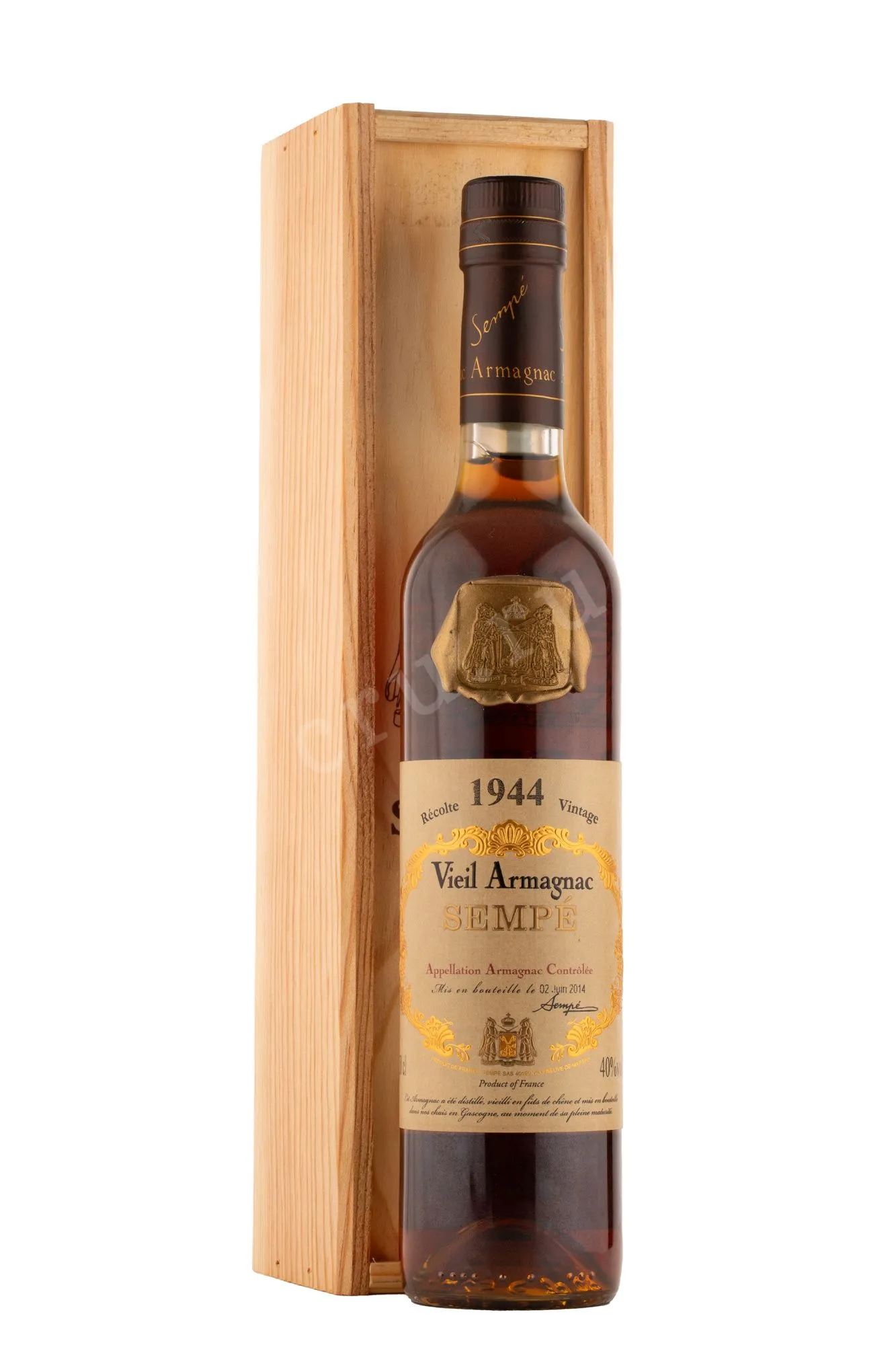 Арманьяк Sempe 1944 г. 0,5 л в деревянной упаковке — коллекционный миллезим из французского региона с контролируемым наименованием. Напиток создали из урожаев, созревших в условиях мягкого климата с умеренным количеством осадков. Особые песчано-глинистые почвы с высоким содержанием железистых соединений наделили его щедрым ароматическим потенциалом. После традиционной однократной перегонки спирты несколько десятилетий провели в дубовых бочках, после чего были купажированы, а бленд разлит при крепости 40 градусов. В комплекте с элегантным деревянным боксом этот редкий бренди станет солидным подарком по особому поводу.