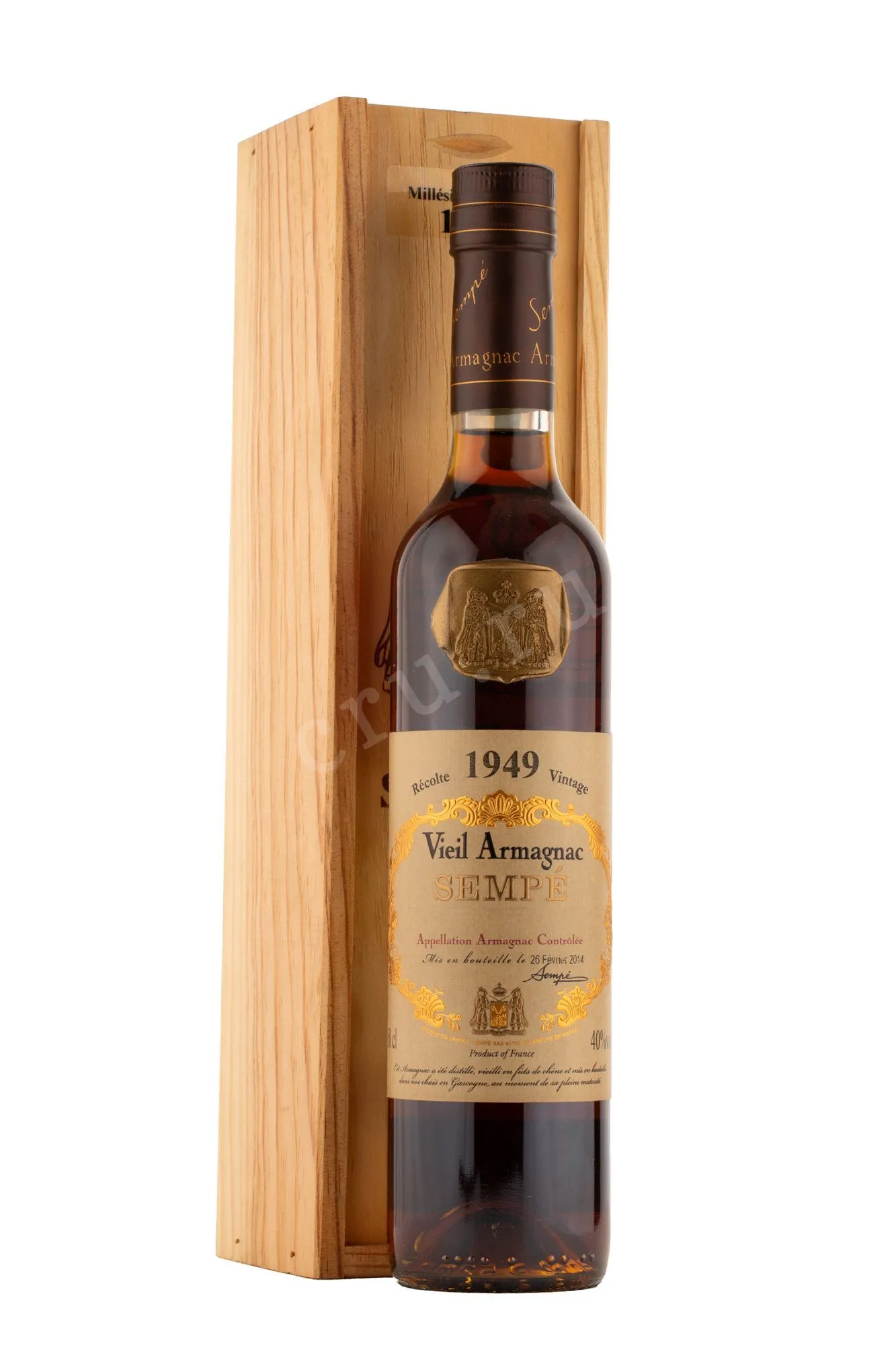 Арманьяк Sempe 1949 г. 0,5 л в деревянном ящике — уникальное изделие. Это выдержанный виноградный спирт из региона Бас‑Арманьяк на основе ягод традиционных для юго-запада Франции сортов. Урожай собрали в 1949-мв терруаре с глинисто‑известняковыми почвами. Лето того года отличалось тёплой, сухой погодой с 320 мм осадков и 2200 часов солнца. Это обеспечило высокую зрелость ягод и низкую кислотность. После двойной дистилляции в традиционных аламбиках молодой бренди заложили на отдых в дубовые бочки. Спустя более полувека выдержки напиток перенял глубокие ноты дерева, карамели и мягкость. Бутылка 0,5 л в деревянной упаковке отлично подходит на роль коллекционного презента.