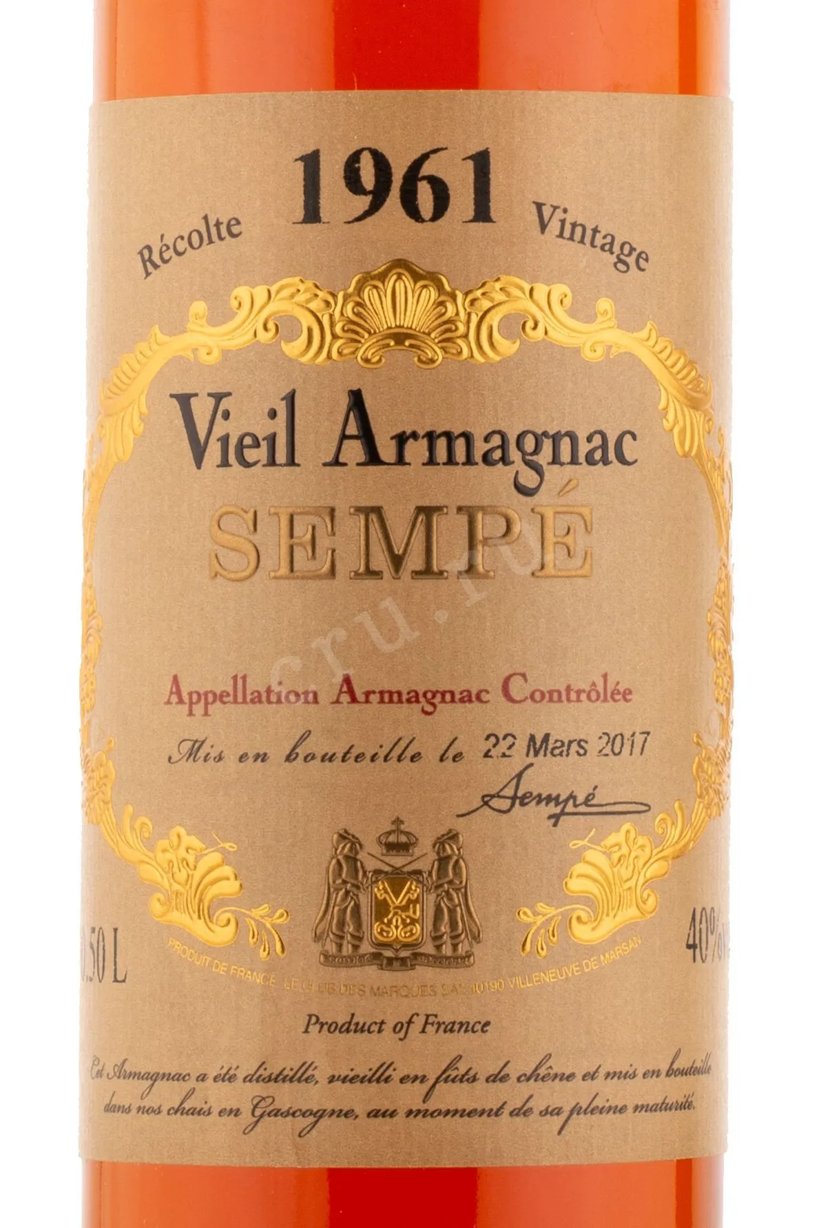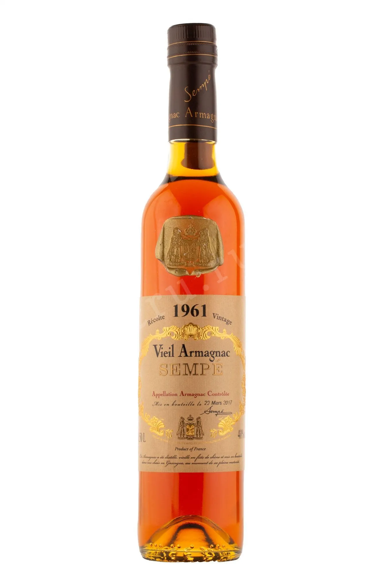 Арманьяк Sempe 1961 0,7 л — это премиальный гасконский виноградный бренди, изготовленный в регионе Ба-Арманьяк из урожая только одного года. Напиток прошёл длительную выдержку в дубовых бочках и был разлит в изящные бутылки объемом 0,5 л в марте 2017 года. Для производства использовались традиционные медные перегонные аппараты, а созревание в бочках длилось несколько десятилетий, благодаря чему напиток приобрел глубокий и насыщенный характер. Уникальность Семпе 1961 года — это редкий коллекционный спиртной напиток, выдержанный более 50 лет. Крепость арманьяка составляет 40%, что является оптимальным для раскрытия аромата и вкуса. Каждая бутылка упакована в деревянную коробку, подчёркивающую премиальный статус и эксклюзивность напитка.