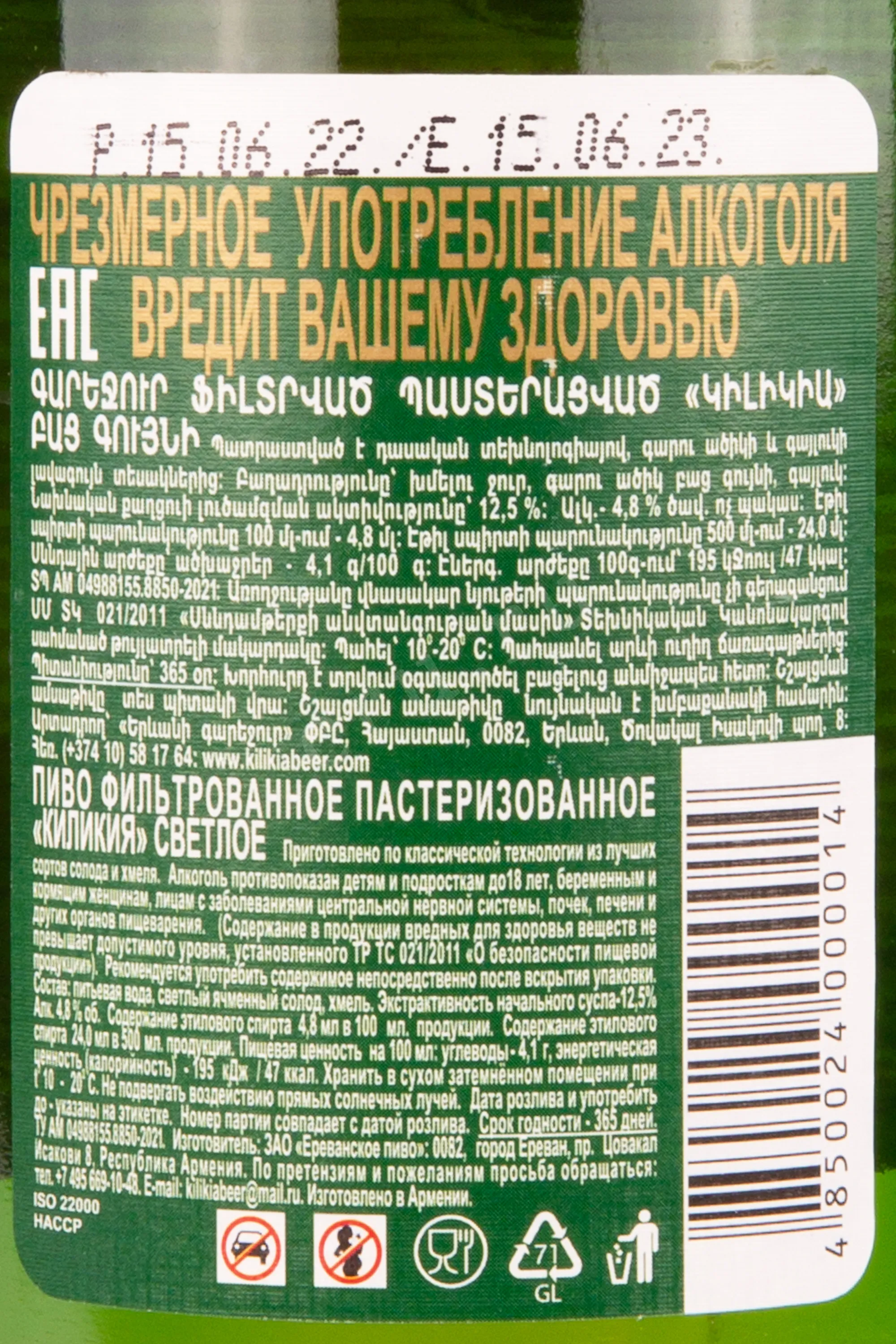 Kilikia 70 0.5 л купить - Армянское пиво Киликия 70 цена в магазине