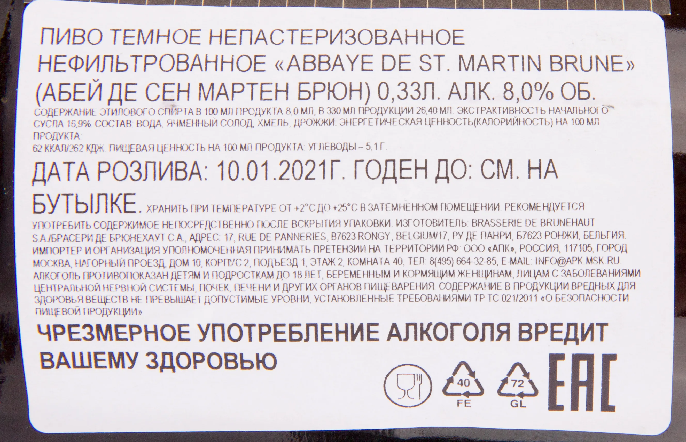 Abbaye de St. Martin Brune 0.33 л купить - Бельгийское пиво Абей де Сен Мартен Брюн цена в магазине