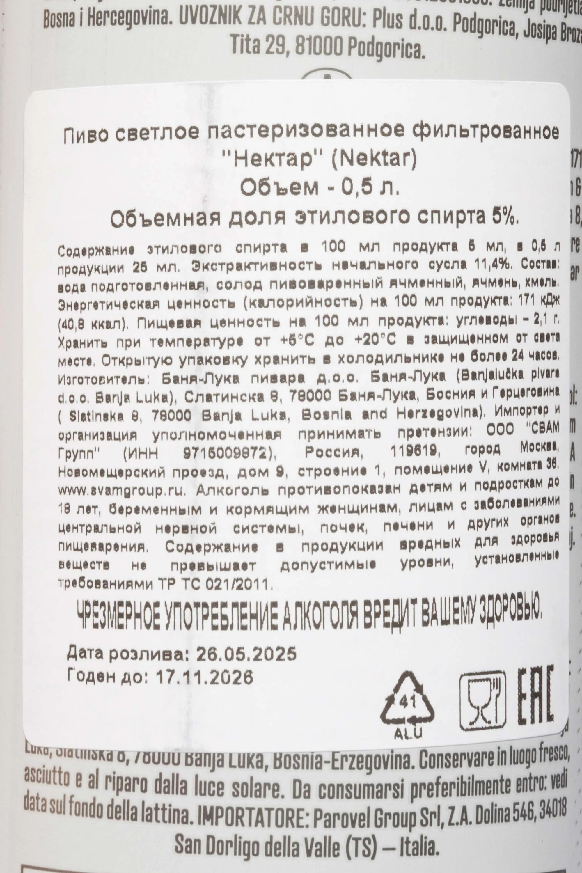 Nektar Lager 0.5 л купить - Босния и Герцеговина Нектар Лагер цена в магазинег. Москва, ул. Профсоюзная, д. 16/1010:00-22:00 Ежедневно+7 (495) 920-20-02info@cru.ru