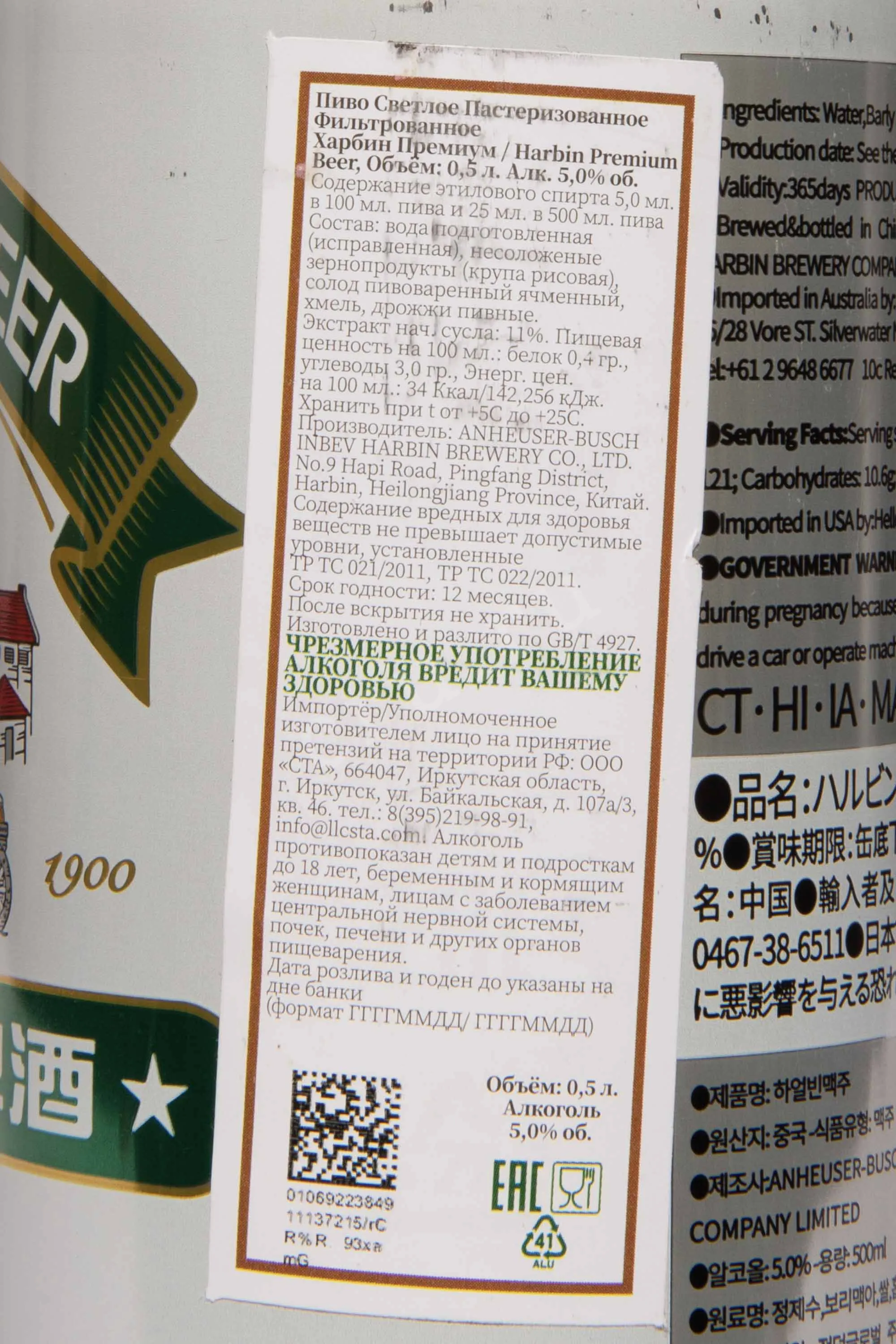 Harbin Premium 0.5 л купить - Китайское пиво Харбин Премиум цена в магазинег. Москва, ул. Профсоюзная, д. 16/1010:00-22:00 Ежедневно+7 (495) 920-20-02info@cru.ru