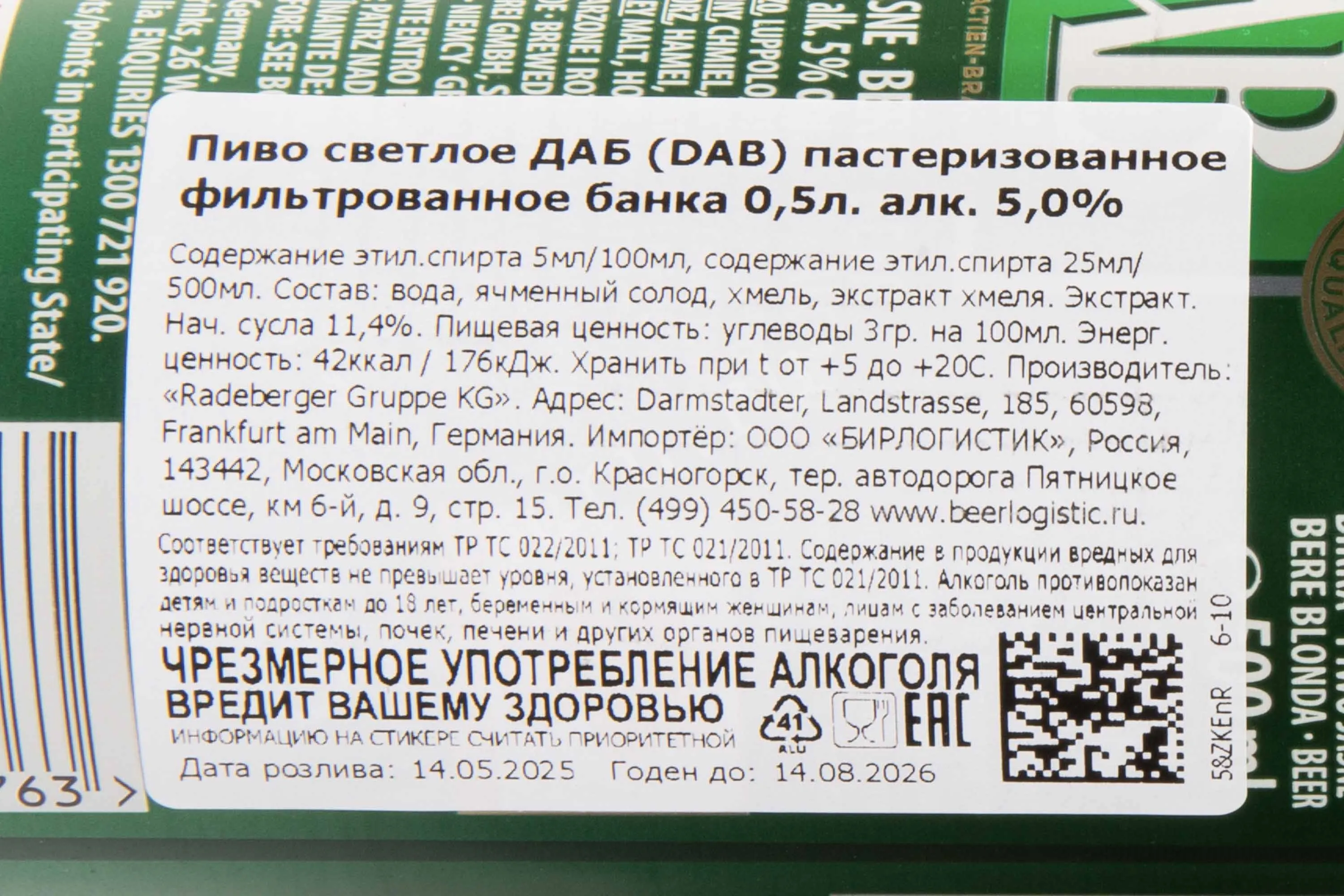 Пиво DAB Dortmunder 0,5 л — это классический лагер, созданный в традициях пивоварения города Дортмунда. Напиток отличается чистотой вкуса и сбалансированным характером, в котором соединяются мягкая солодовая основа и лёгкая хмелевая горчинка. Пивоварня Dortmunder Actien-Brauerei, основанная в XIX веке, применяет проверенные временем технологии, включая низовое брожение и выдержку при низких температурах. Такой метод позволяет сохранить свежесть и гармонию. ДАБ Дортмундер стало образцом для целого стиля Dortmunder Export и получило широкое признание на международных конкурсах. Этот сорт отмечен наградами за стабильное качество и попадает в списки лучших немецких лагерных пив, что подтверждает его репутацию среди ценителей.