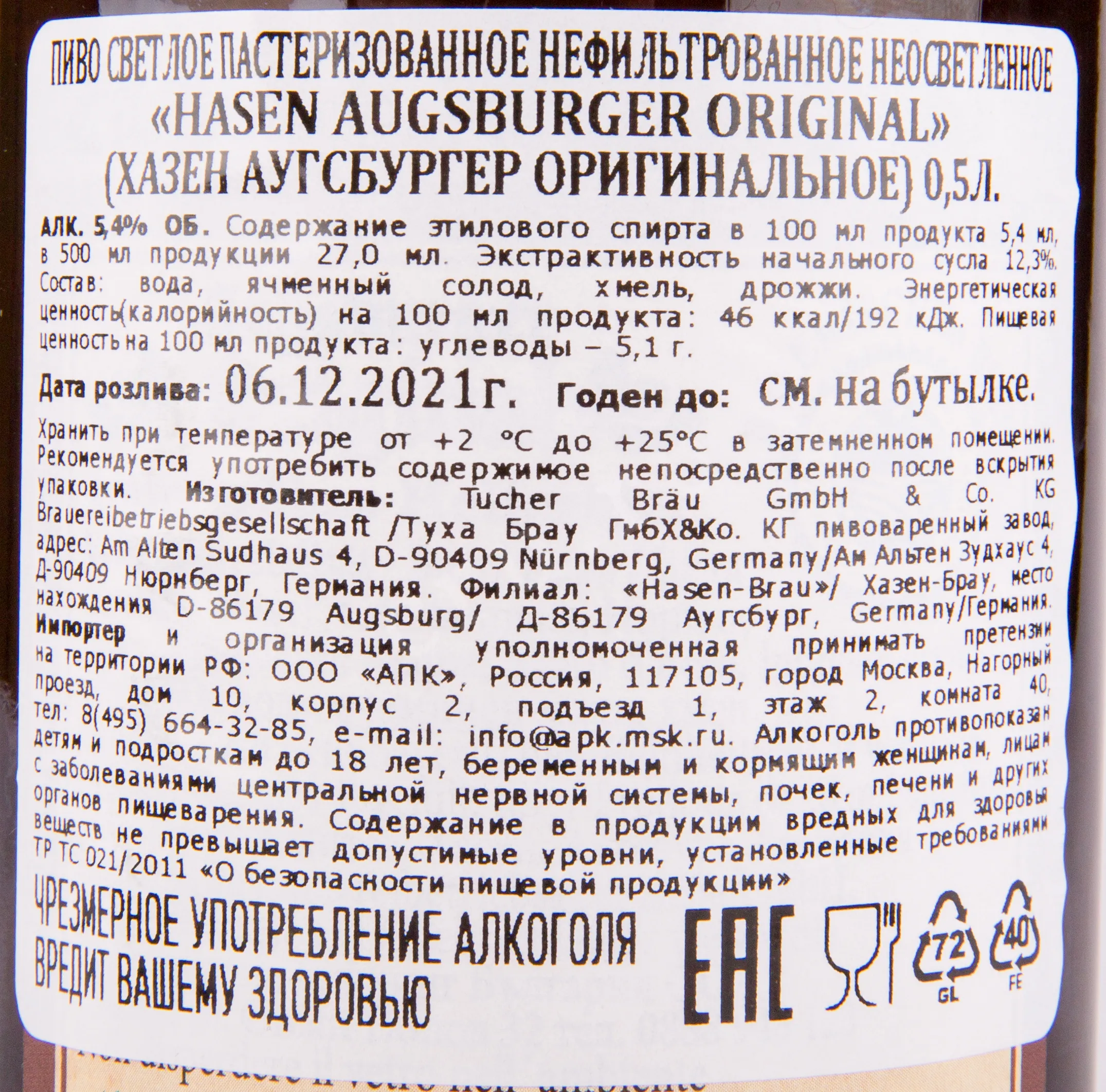 Пиво Hasen-Brau Augsburger Original 0.5 л