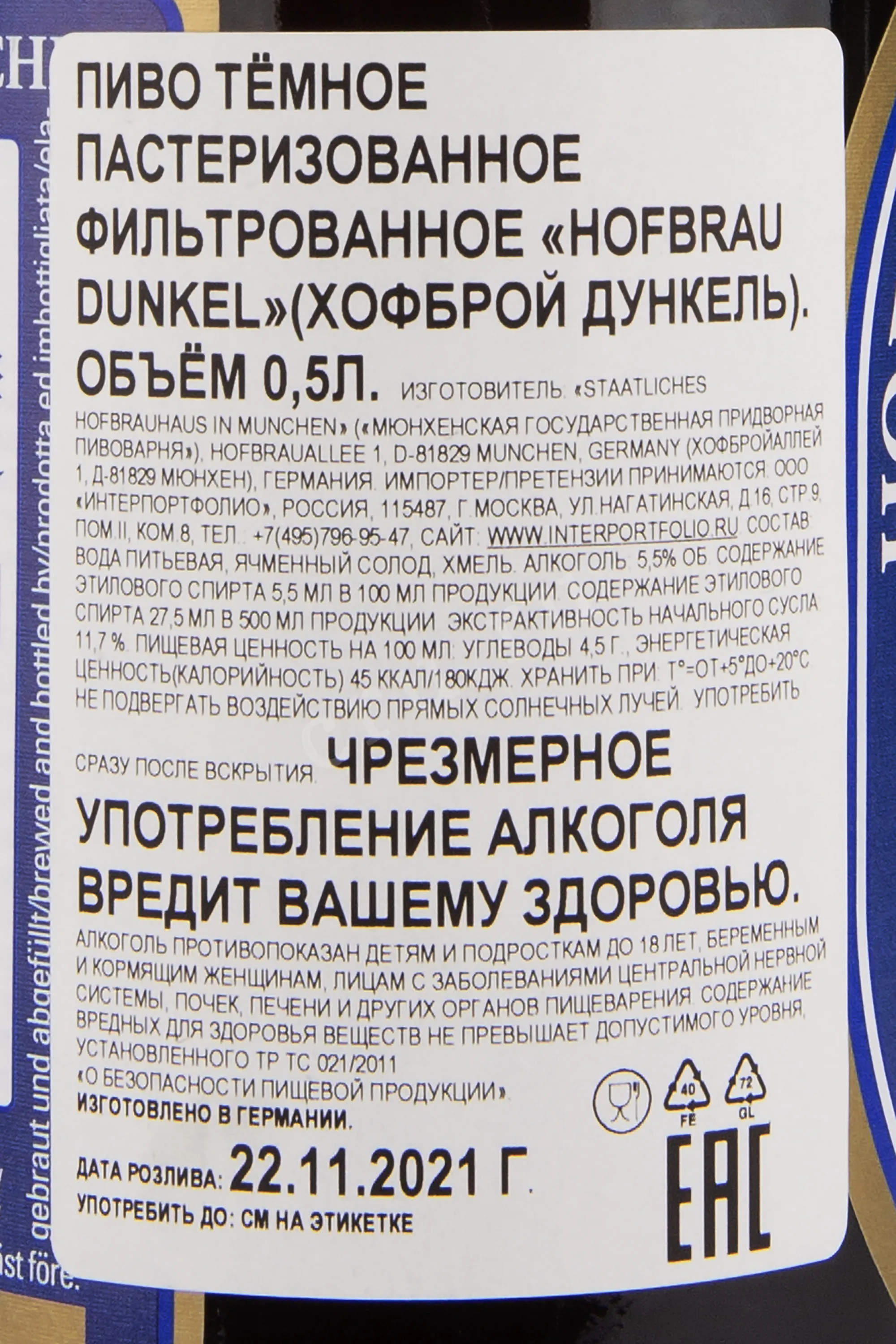 Hofbrau Dunkel 0.5 л купить - Немецкое пиво Хофброй Дункель цена в магазинег. Москва, ул. Профсоюзная, д. 16/1010:00-22:00 Ежедневно+7 (495) 920-20-02info@cru.ru