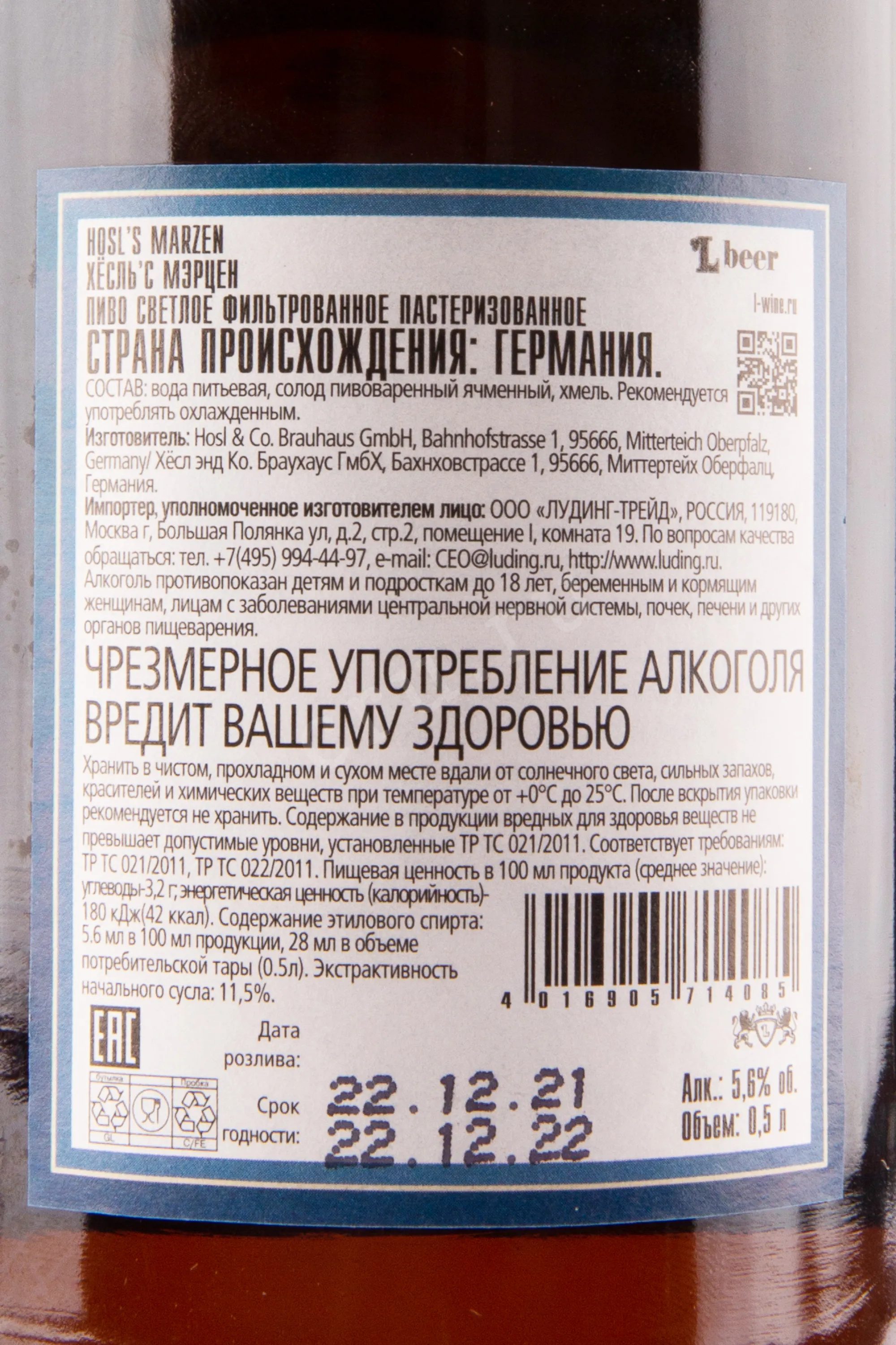 Hosl Marzen 0.5 л купить - Немецкое пиво Хёсль Мэрцен цена в магазине