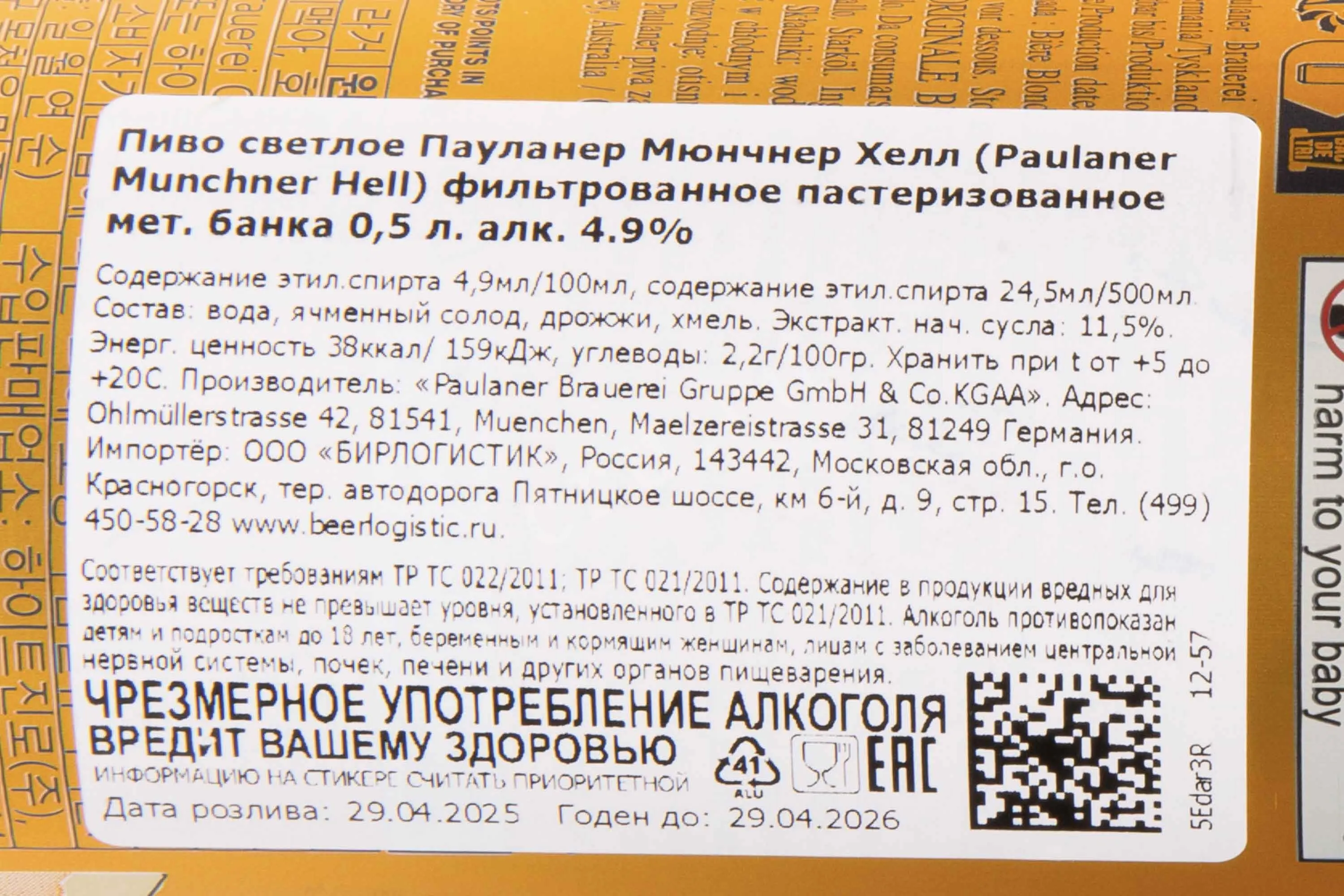 Paulaner Muncher Hell 0.5 л купить - Немецкое пиво Пауланер Мюнчнер Хелл цена в магазинег. Москва, ул. Профсоюзная, д. 16/1010:00-22:00 Ежедневно+7 (495) 920-20-02info@cru.ru