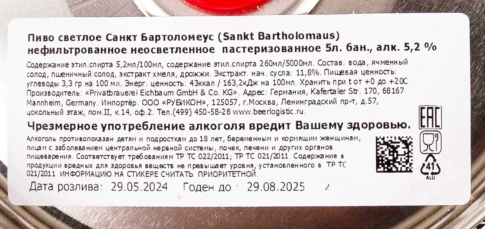Sankt Bartholomaus 5 л купить - Немецкое пиво Санкт Бартоломеус цена в магазине