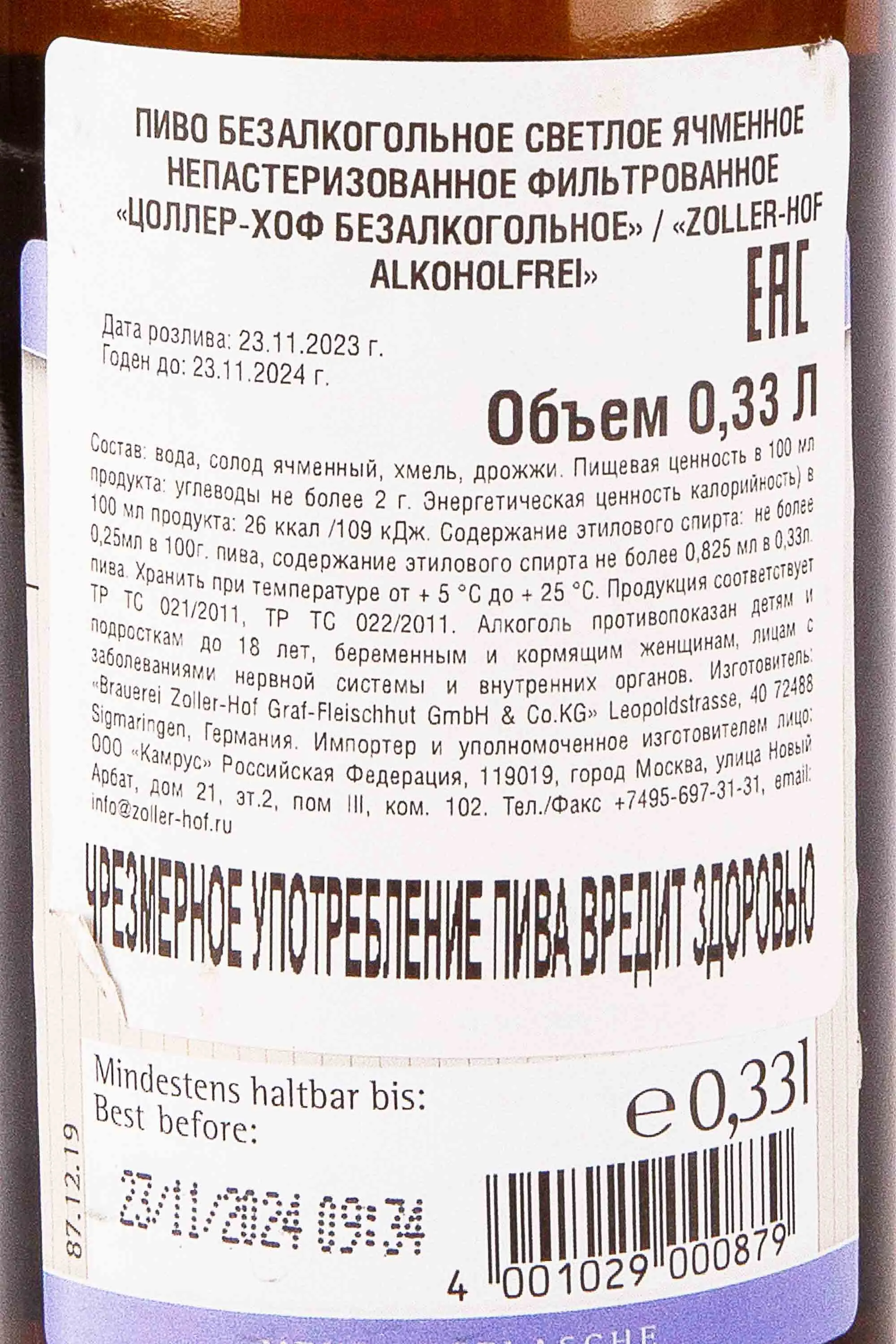 Zoller-Hof Alkoholfrei 0.33 л купить - Немецкое пиво Цоллер-Хоф безалкогольное цена в магазине