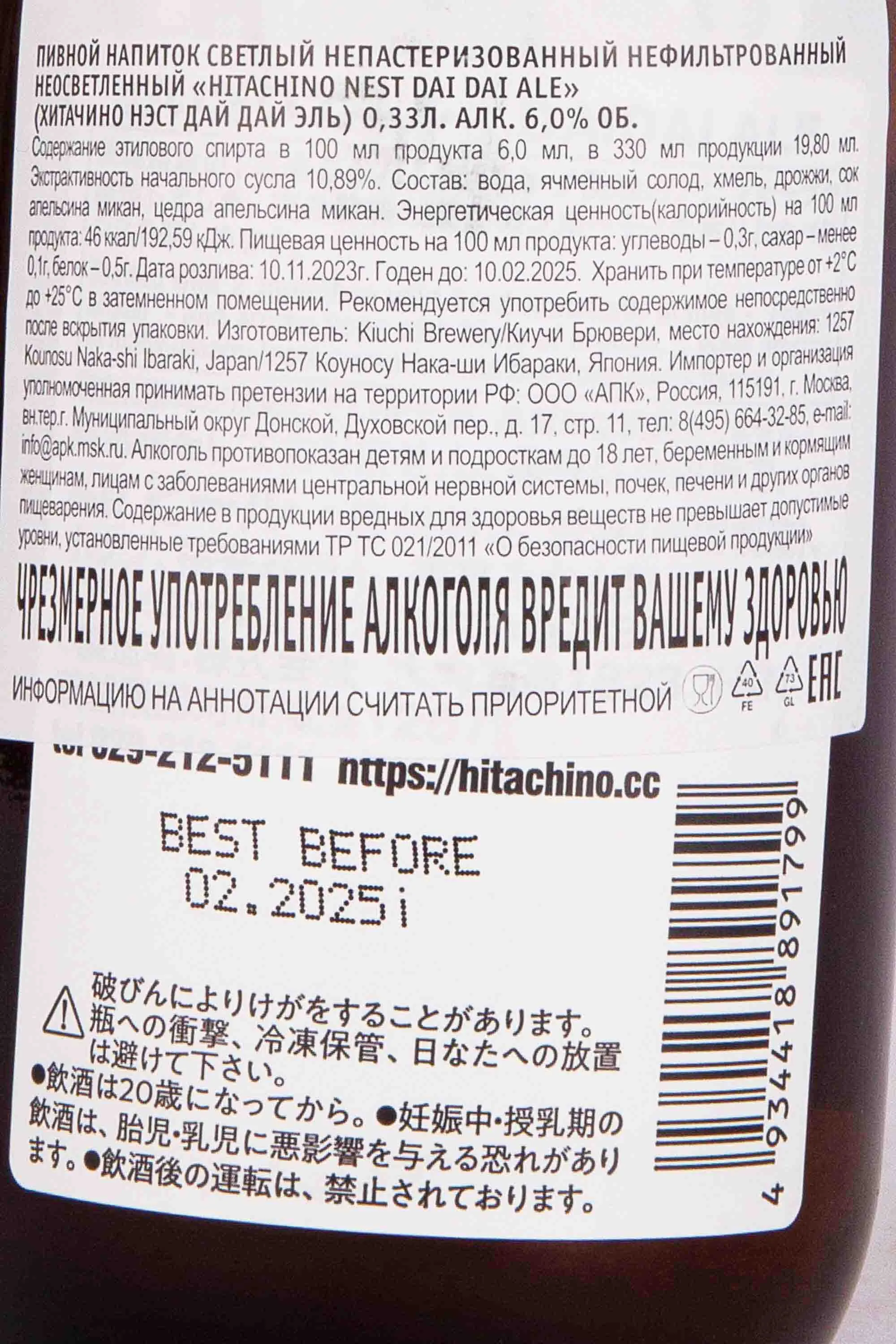 Hitachino Nest Dai Dai Ale 0.33 л купить - Японское пиво Хитачино Нэст Дай Дай Эль цена в магазине