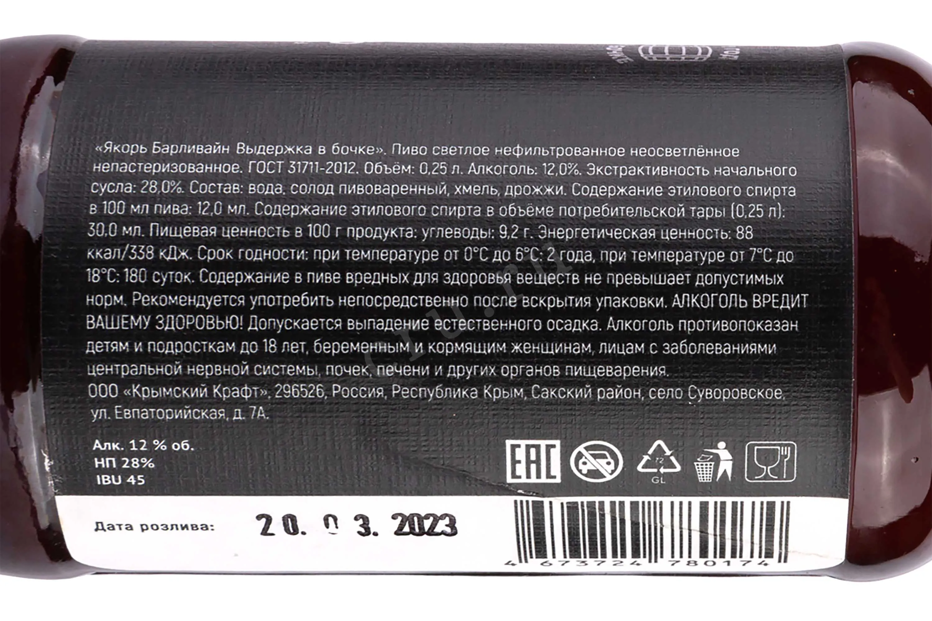 Yakor Barley Wine 0.25 л купить - Российское пиво Якорь Барливайн цена в магазине