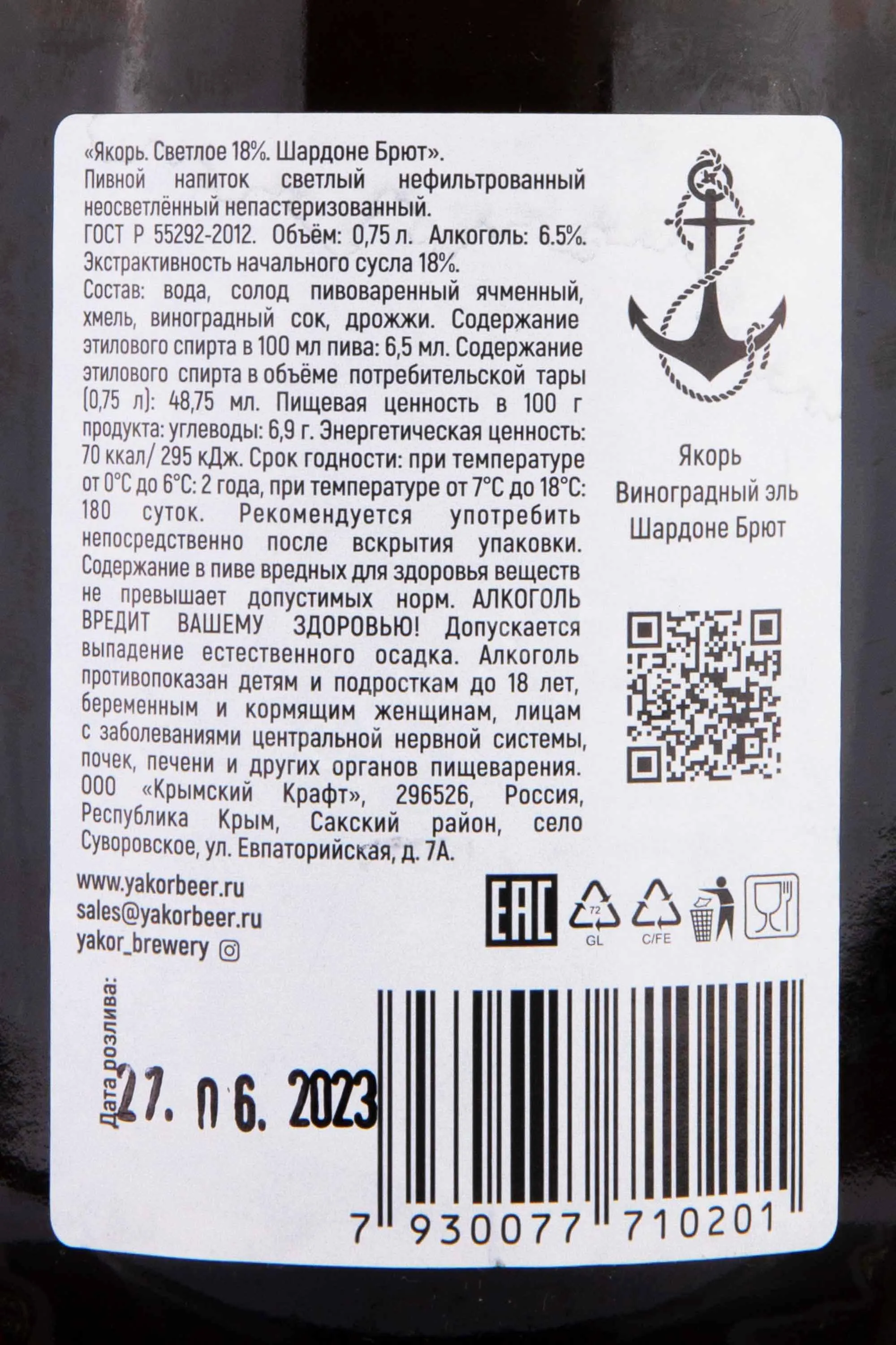 Yakor Chardonnay Brut 0.75 л купить - Российское пиво Якорь Шардоне Брют цена в магазине
