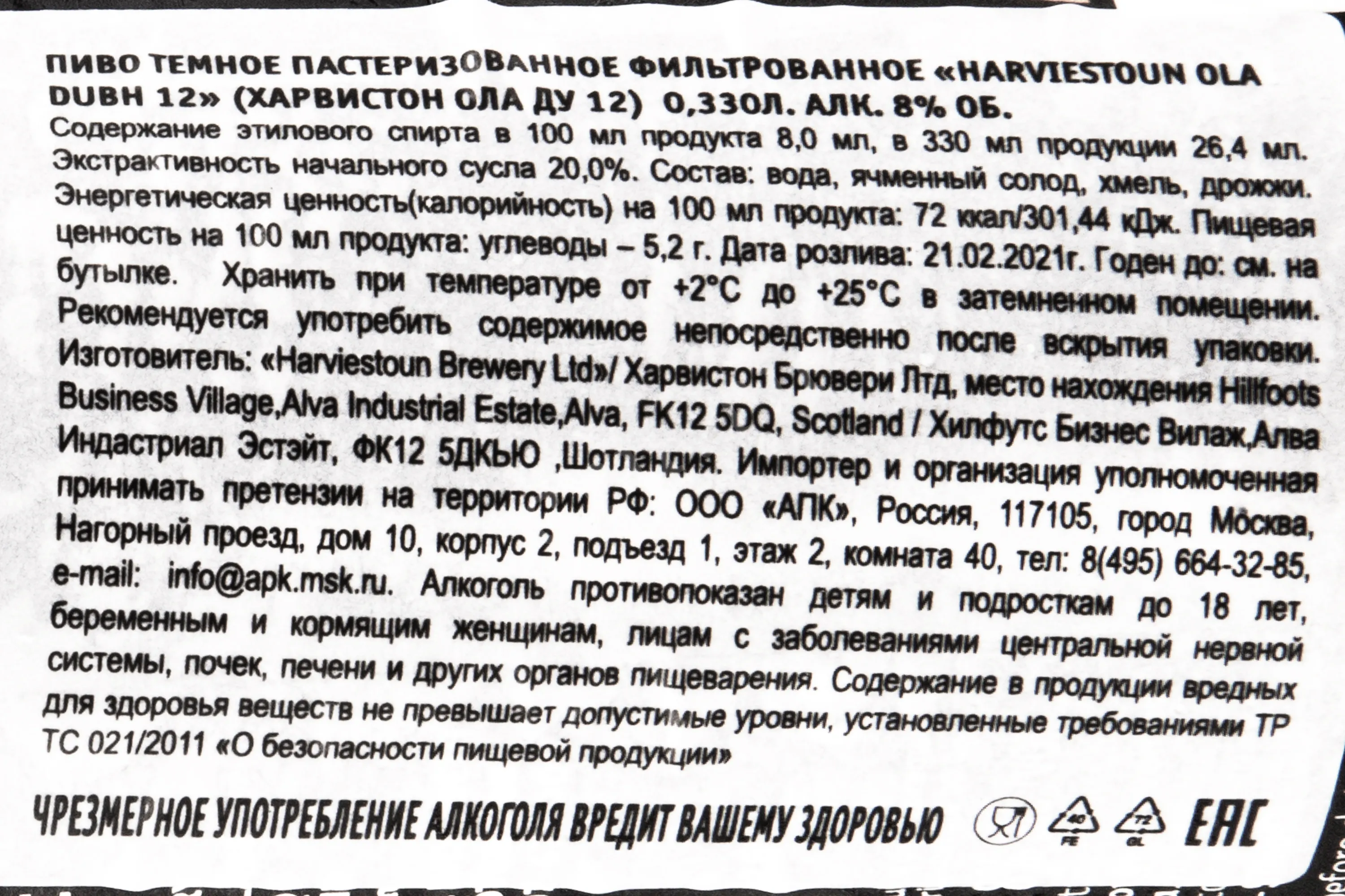 Ola Dubh Special Reserve 12 0.33 л купить - Шотландское пиво Ола Ду Спешл Резерв 12 цена в магазине