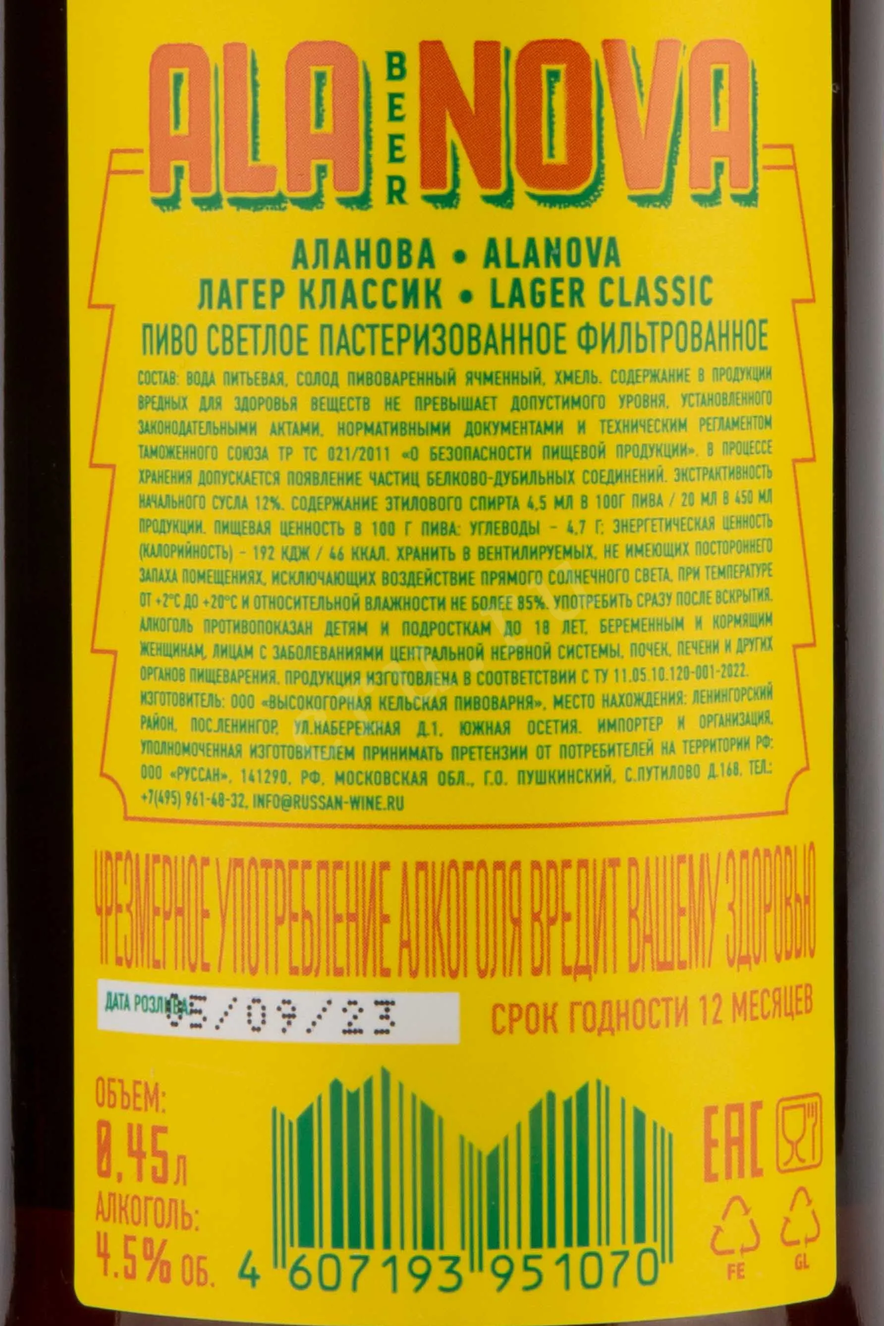 Ala Nova Lager Classic 0.45 л купить - Южная Осетия Ала Нова Лагер Классик цена в магазине