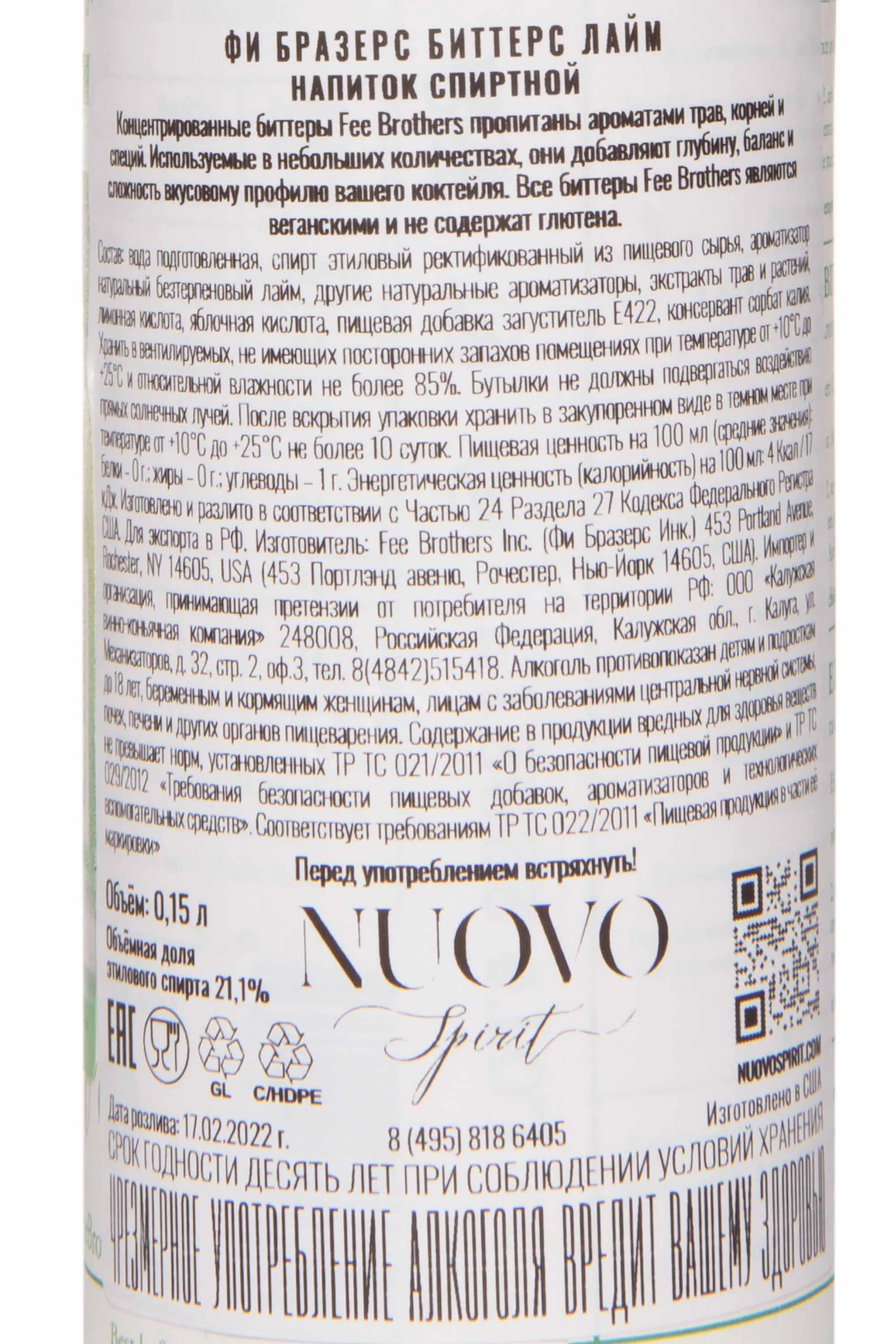 Fee Brothers Lime 0.15 л купить - Биттер Фи Бразерс Лайм цена в магазине