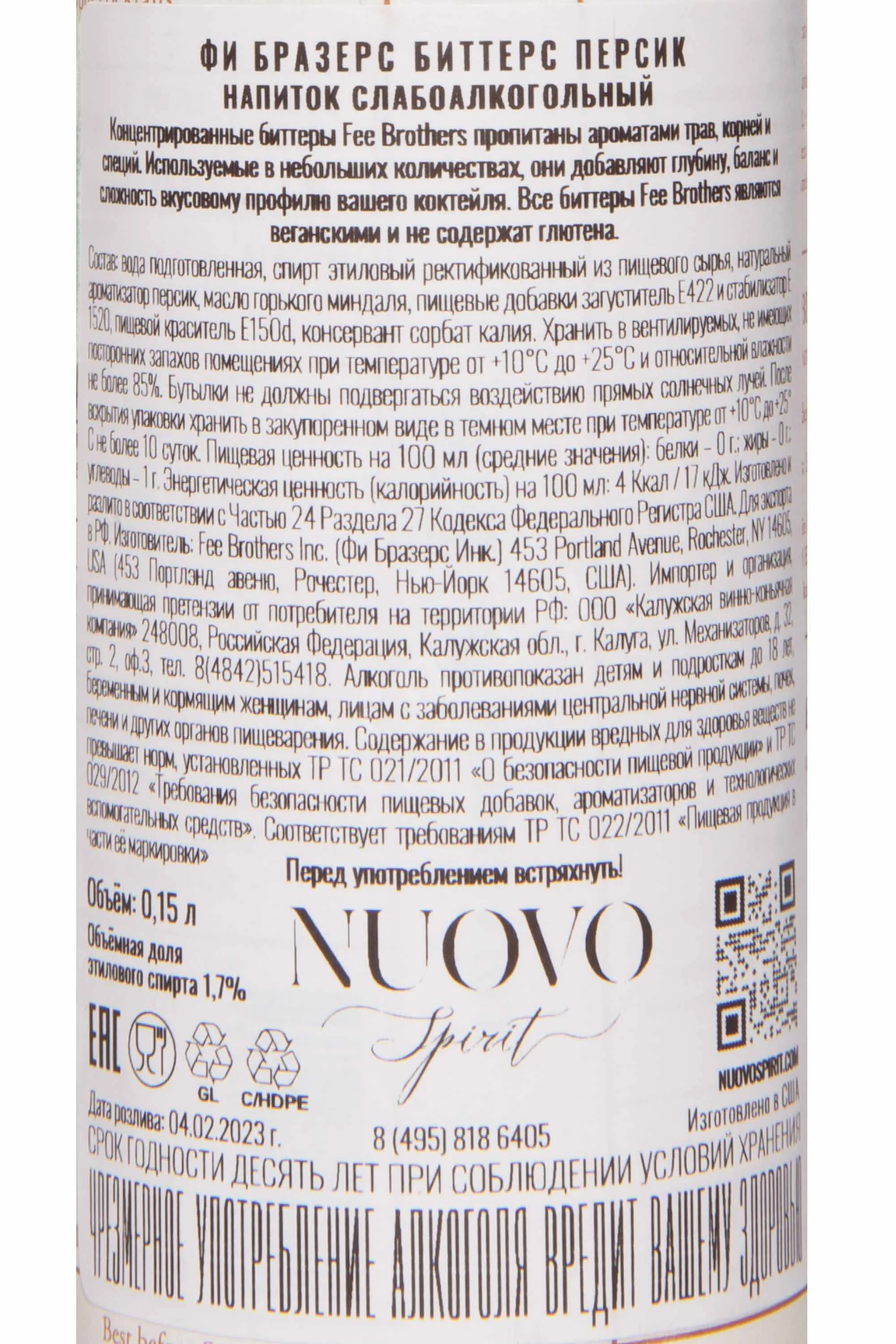 Fee Brothers Peach 0.15 л купить - Биттер Фи Бразерс Персик цена в магазине