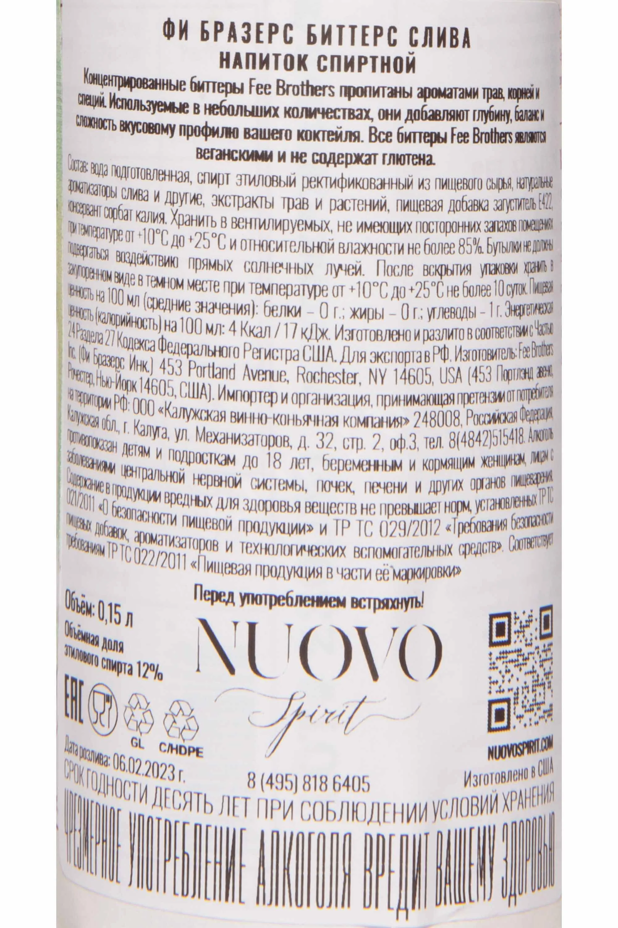 Fee Brothers Plum 0.15 л купить - Биттер Фи Бразерс Слива цена в магазине