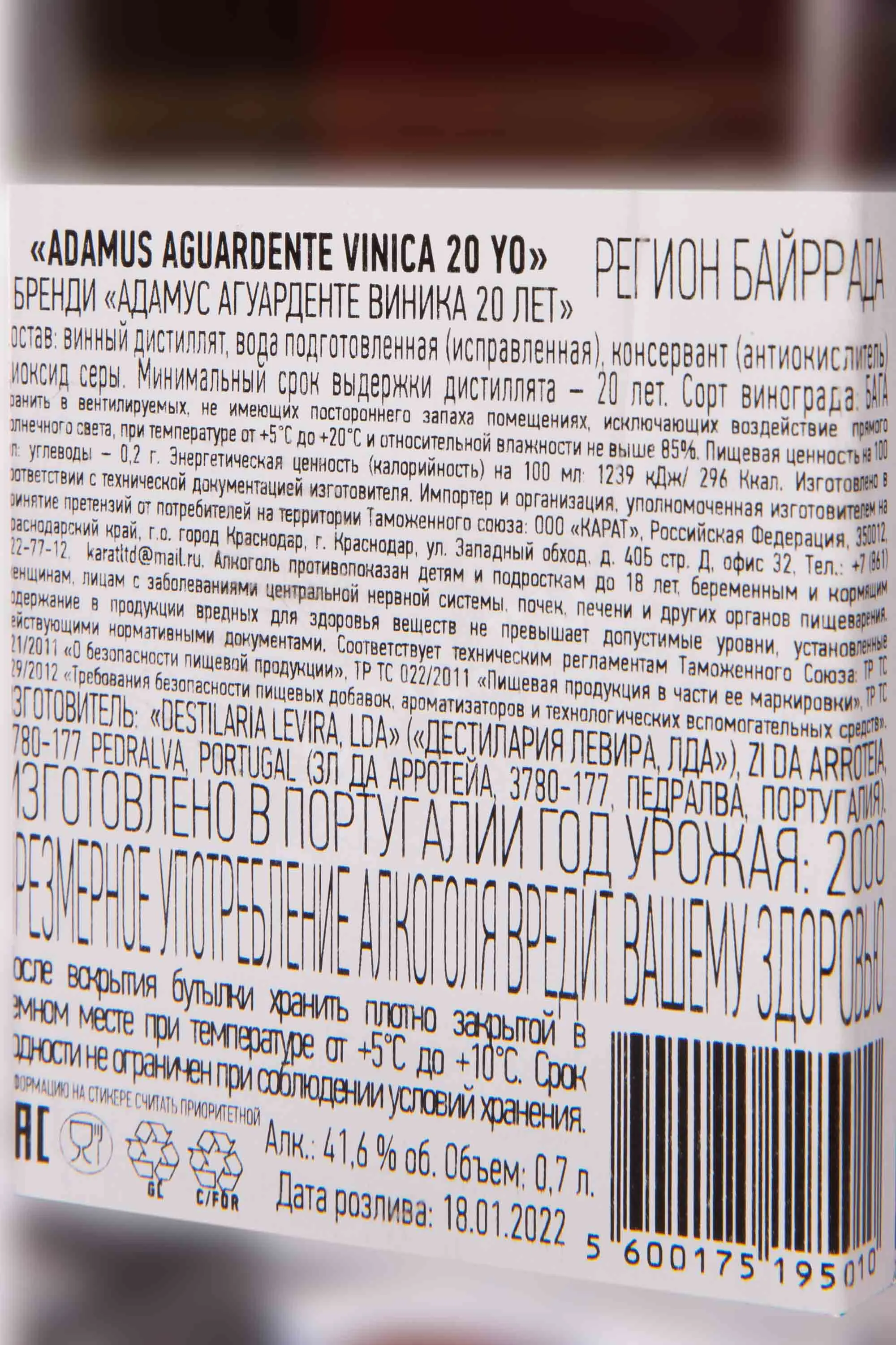 Бренди Adamus Aguardente Vinica 20 years old in gift box 0.7 л