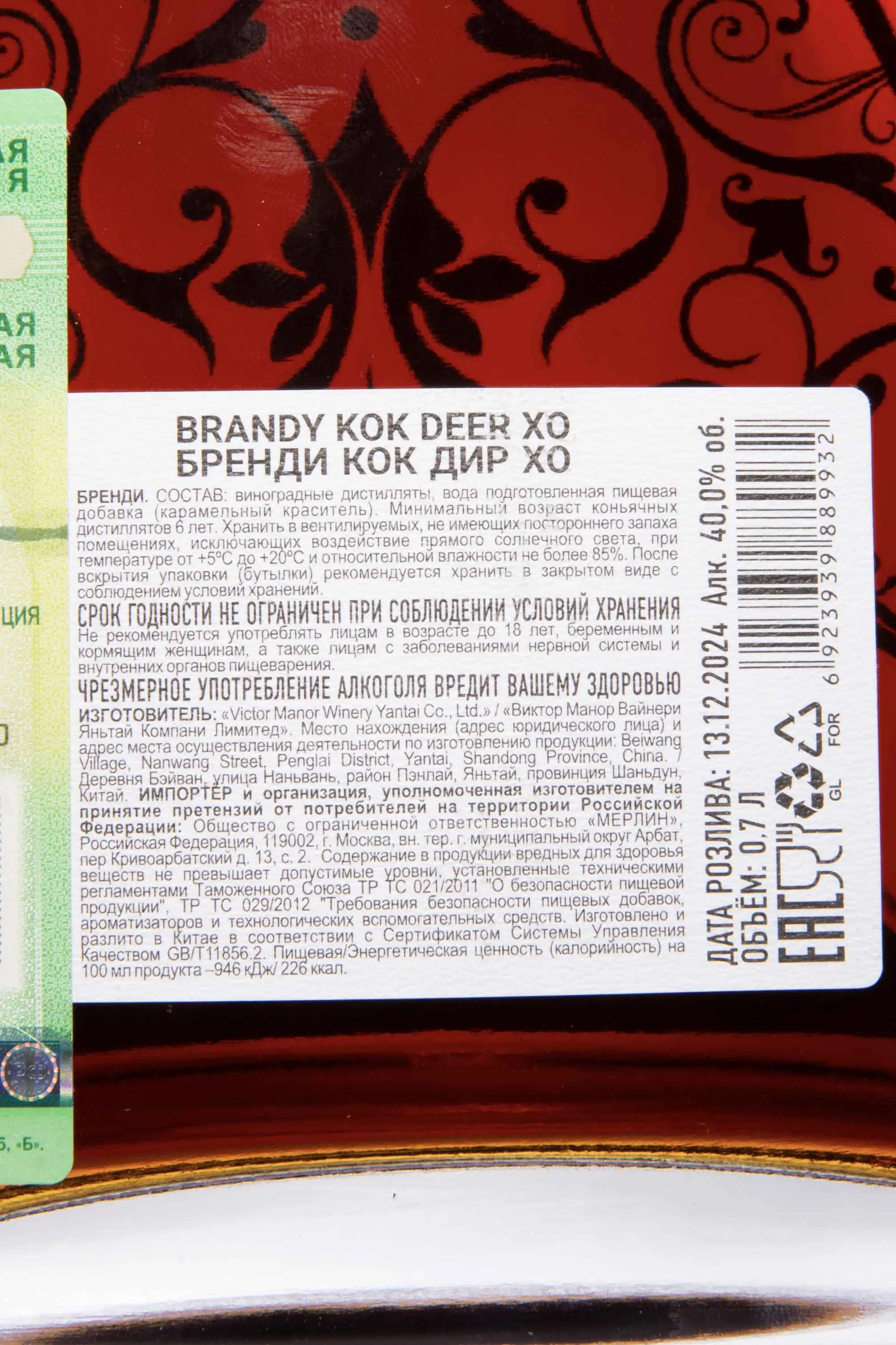 Бренди Kok Deer XO 0.7 л