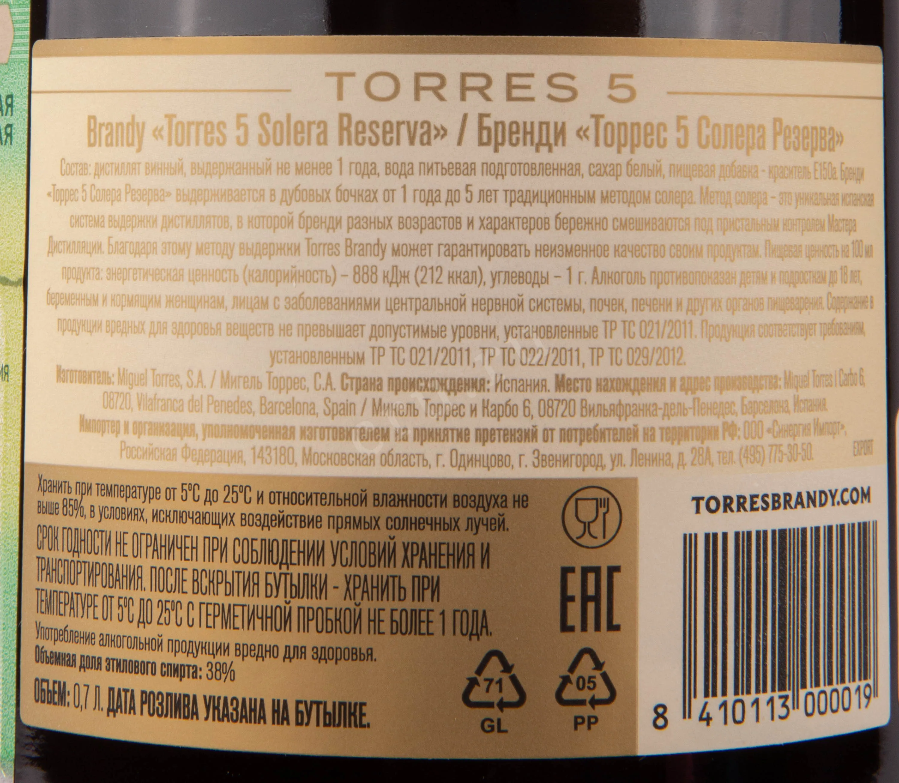 Torres 5 years gift box 0.7 л купить - Бренди Торрес 5 лет в подарочной упаковке цена в магазине
