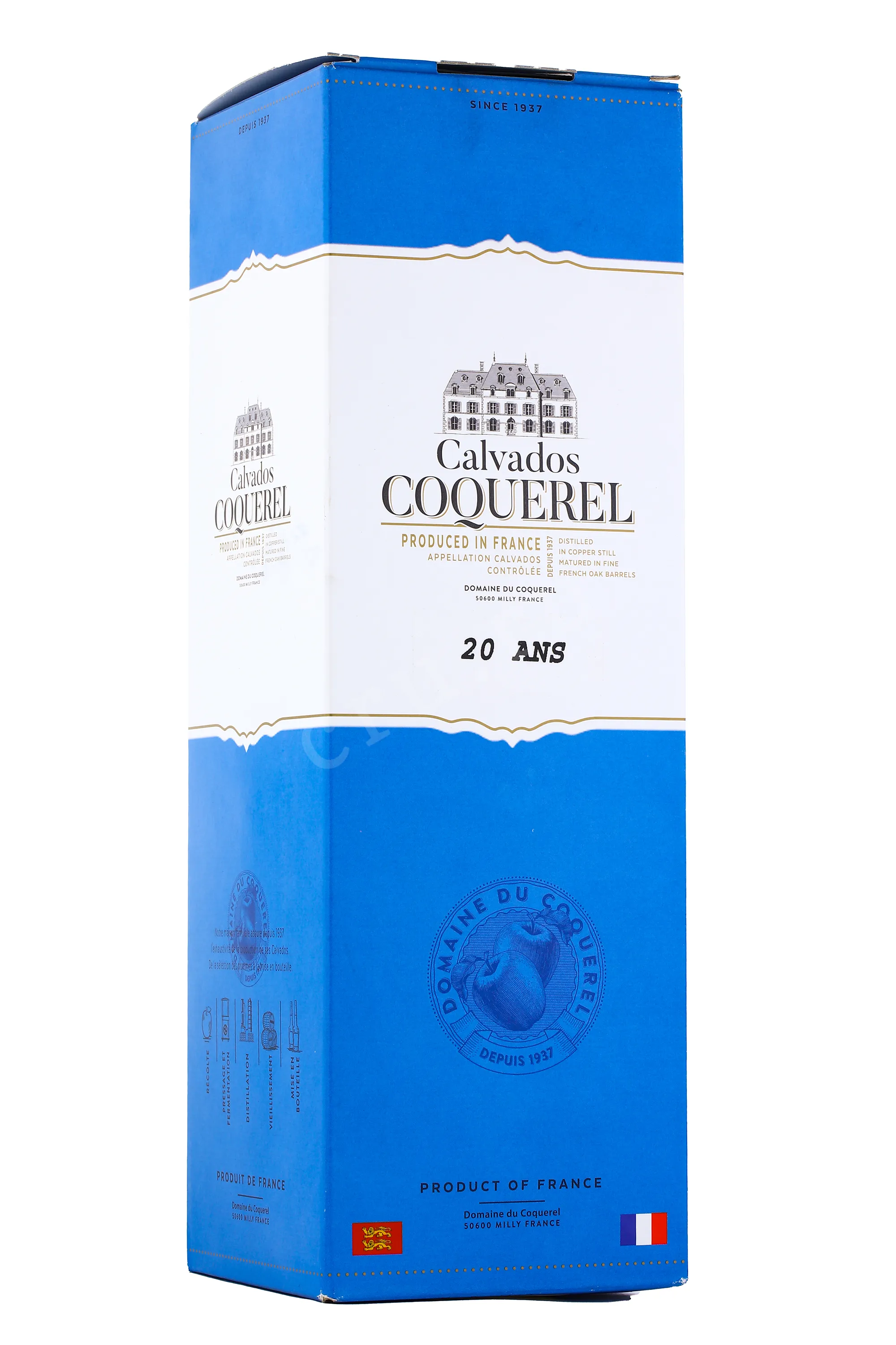 Кальвадос Coquerel 20 years 0.7 л — напиток, созданный из яблок, которые выросли на богатых почвах региона Нормандия на северо-западе Франции. Климат здесь был умеренным и влажным, а плодородные земли обеспечили яблокам сбалансированную кислотность и яркий аромат. Для производства этого алкоголя использовались фрукты особых сортов, тщательно отобранные вручную и подвергнутые естественной ферментации. Полученный сидр дважды перегоняли в медных кубах традиционным методом, после чего напиток поместили в дубовые бочки из французского дуба. На протяжении 20 лет выдержки кальвадос постепенно обретал свою глубину и уникальный вкусовой профиль, который подчеркнул характерные особенности местного терруара и мастерство производителей.