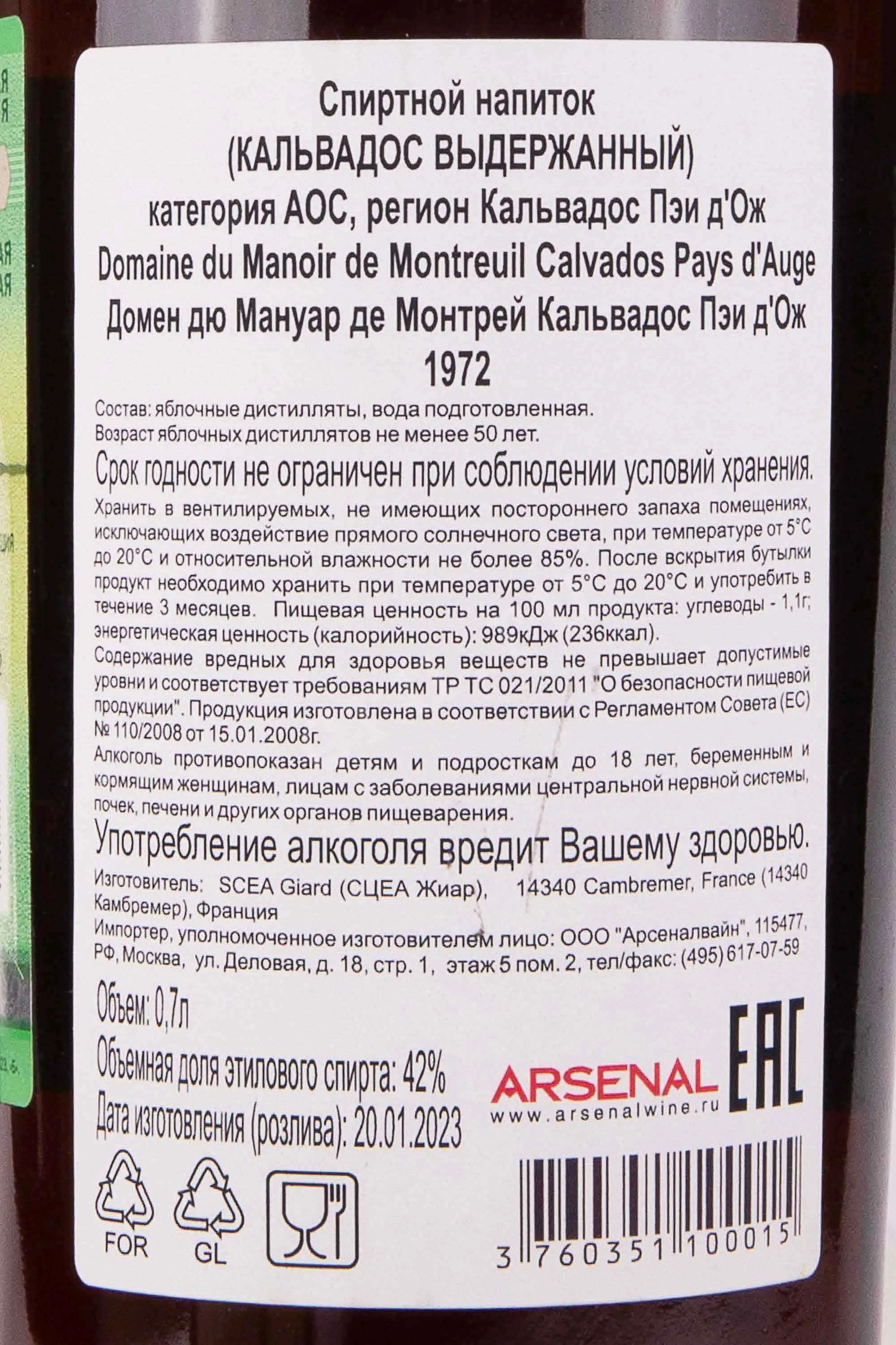 Domaine du Manoir de Montreuil Calvados Pays dAuge 1972 0.7 л купить - Кальвадос Домен дю Мануар де Монтрей Кальвадос Пэи дОж цена в магазинег. Москва, ул. Профсоюзная, д. 16/1010:00-22:00 Ежедневно+7 (495) 920-20-02info@cru.ru