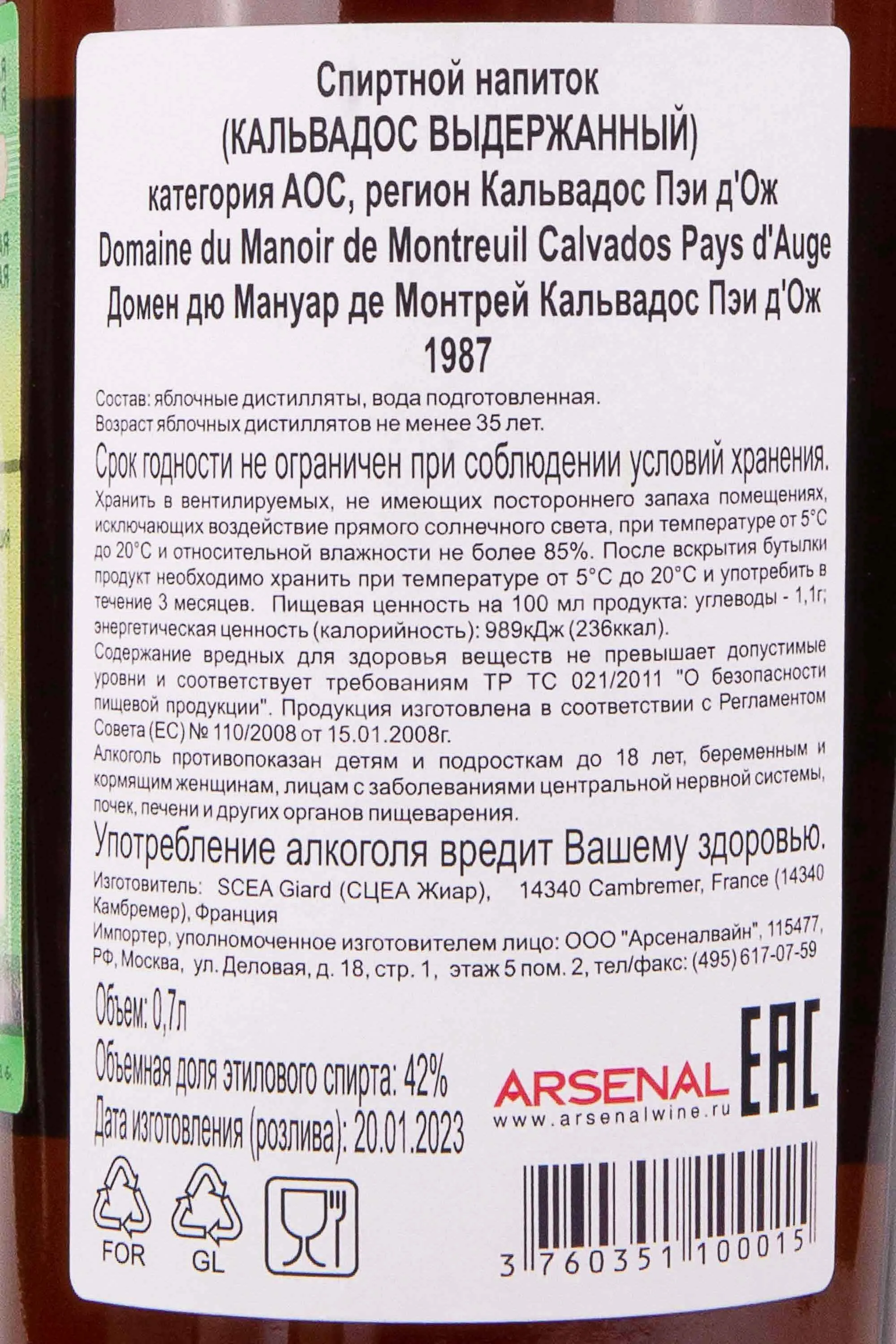 Domaine du Manoir de Montreuil Calvados Pays dAuge 1987 0.7 л купить - Кальвадос Домен дю Мануар де Монтрей Кальвадос Пэи дОж цена в магазинег. Москва, ул. Профсоюзная, д. 16/1010:00-22:00 Ежедневно+7 (495) 920-20-02info@cru.ru