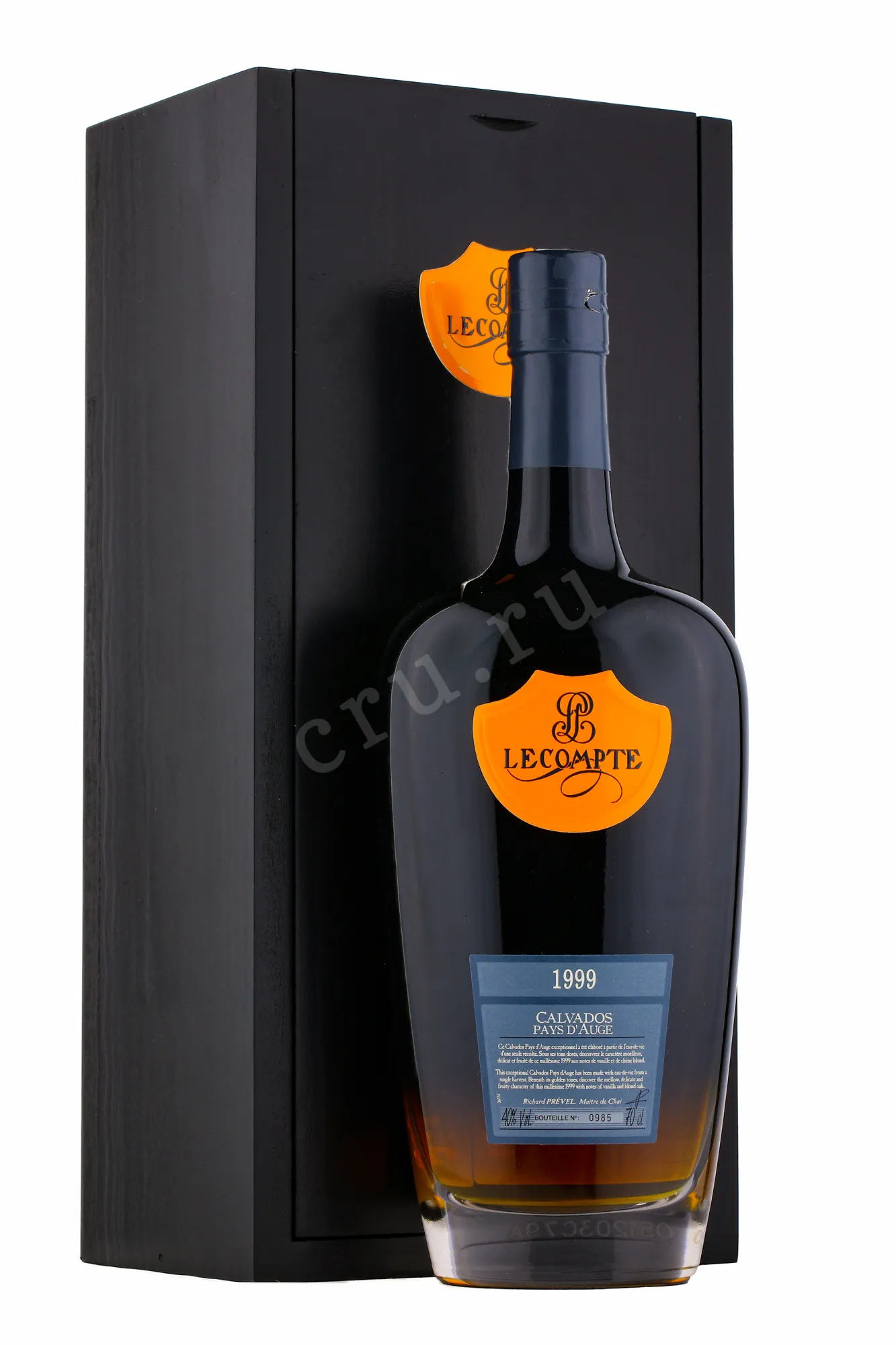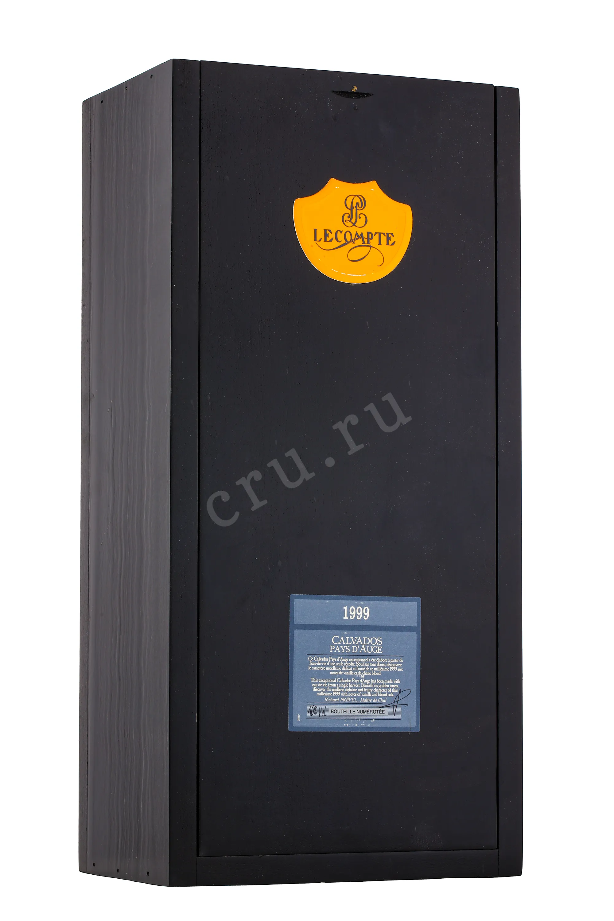 Кальвадос Lecompte 1999 г. 0,7 л в подарочной упаковке — винтажный образец из региона Пэи-д'Ож в Нормандии. Это исключительный напиток, созданный из яблок урожая 1999 года. Терруар района характеризуется умеренным морским климатом, мягкой зимой и прохладным летом. Винтаж отличался тёплым летом и мягкой осенью, благодаря чему плоды получили высокую концентрацию сахара и сохранили свежесть. Для создания бренди использовали смесь из более чем 20 сортов. Сырье собрали вручную, прессовали, отжатый сок сбродили и дважды перегнали в традиционных медных аламбиках. Выдержка проходила в небольших бочках из французского дуба около 20 лет. Такая технология помогла получить бренди с глубоким характером, мягкостью и балансом.