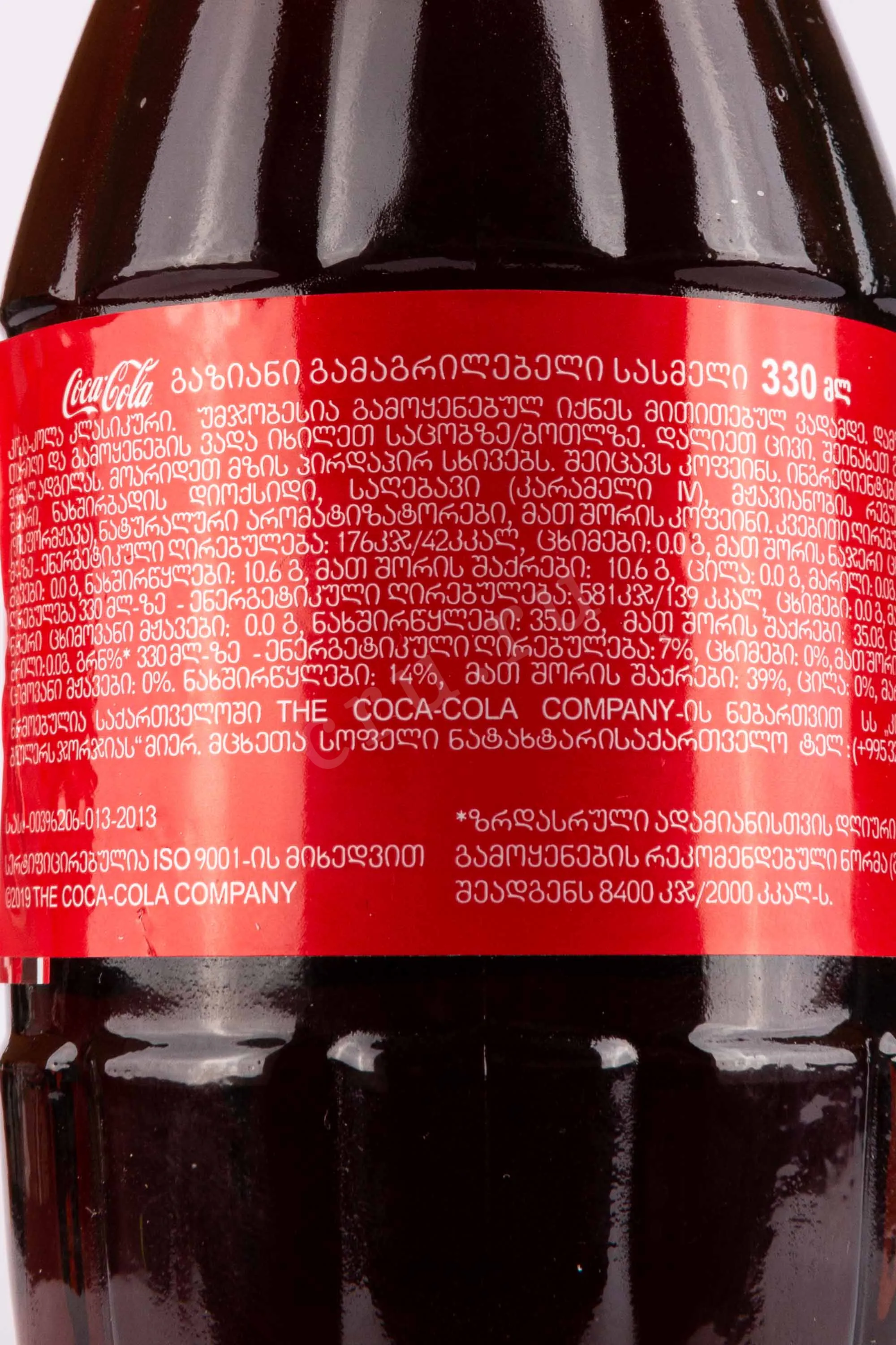 Газированный напиток Coca Cola Classic 0,33 л в стеклянной бутылке создана на основе традиционного рецепта, разработанного фармацевтом Джоном Ститом Пембертоном в конце XIX века в Атланте (штат Джорджия, США). Особенность тары — культовая форма, созданная в 1915 году дизайнером Эрлом Дином. Она получила название «контурная бутылка» и стала символом бренда. В процессе производства вода, входящая в состав напитка, проходит несколько этапов очистки и фильтрации. Затем в неё добавляется сахар, заранее приготовленный концентрат с натуральными ароматическими компонентами, после чего смесь насыщается углекислым газом.