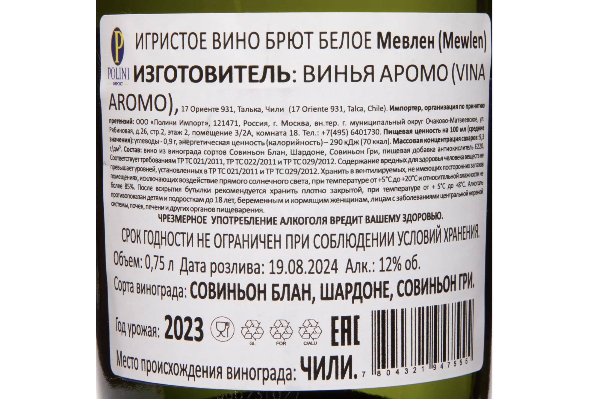 Mewlen White Brut 2023 0.75 л купить - Чилийское игристое вино Мевлен Белое Брют цена в магазине КРЮ ПРОФИ г. Москва, ул. Профсоюзная, д. 16/10 10:00-22:00 Ежедневно +7 (495) 920-20-02 info@cru.ru