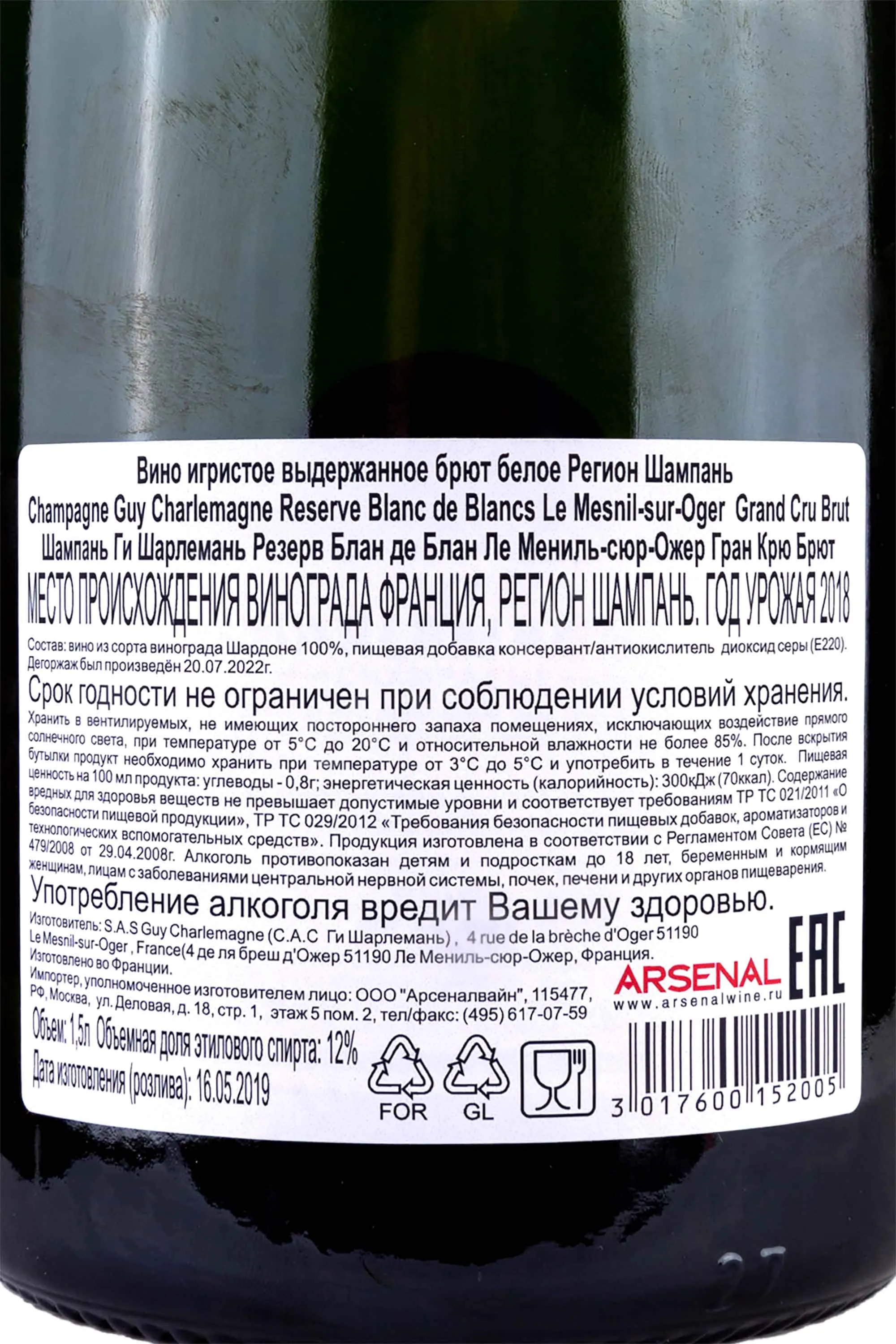 Guy Charlemagne Reserve Blanc de Blancs Le Mesnil-sur-Oger 2018 1.5 л купить - шампанское Ги Шарлемань Резерв Блан де Блан Ле Мениль-сюр-Ожер цена в магазине КРЮ ПРОФИ г. Москва, ул. Профсоюзная, д. 16/10 10:00-22:00 Ежедневно +7 (495) 920-20-02 info@cru.ru