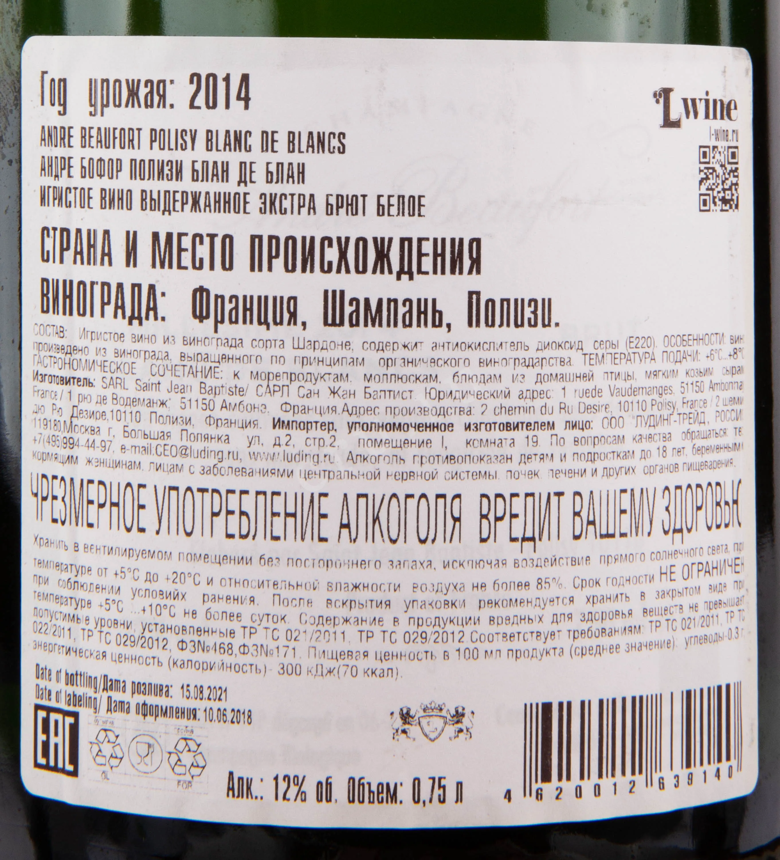 Andre Beaufort Polisy Millesime Blanc de Blancs 2014 2017 0.75 л купить - шампанское Андре Бофор Полизи Миллезим Блан де Блан 2014 цена в магазине КРЮ ПРОФИ г. Москва, ул. Профсоюзная, д. 16/10 10:00-22:00 Ежедневно +7 (495) 920-20-02 info@cru.ru