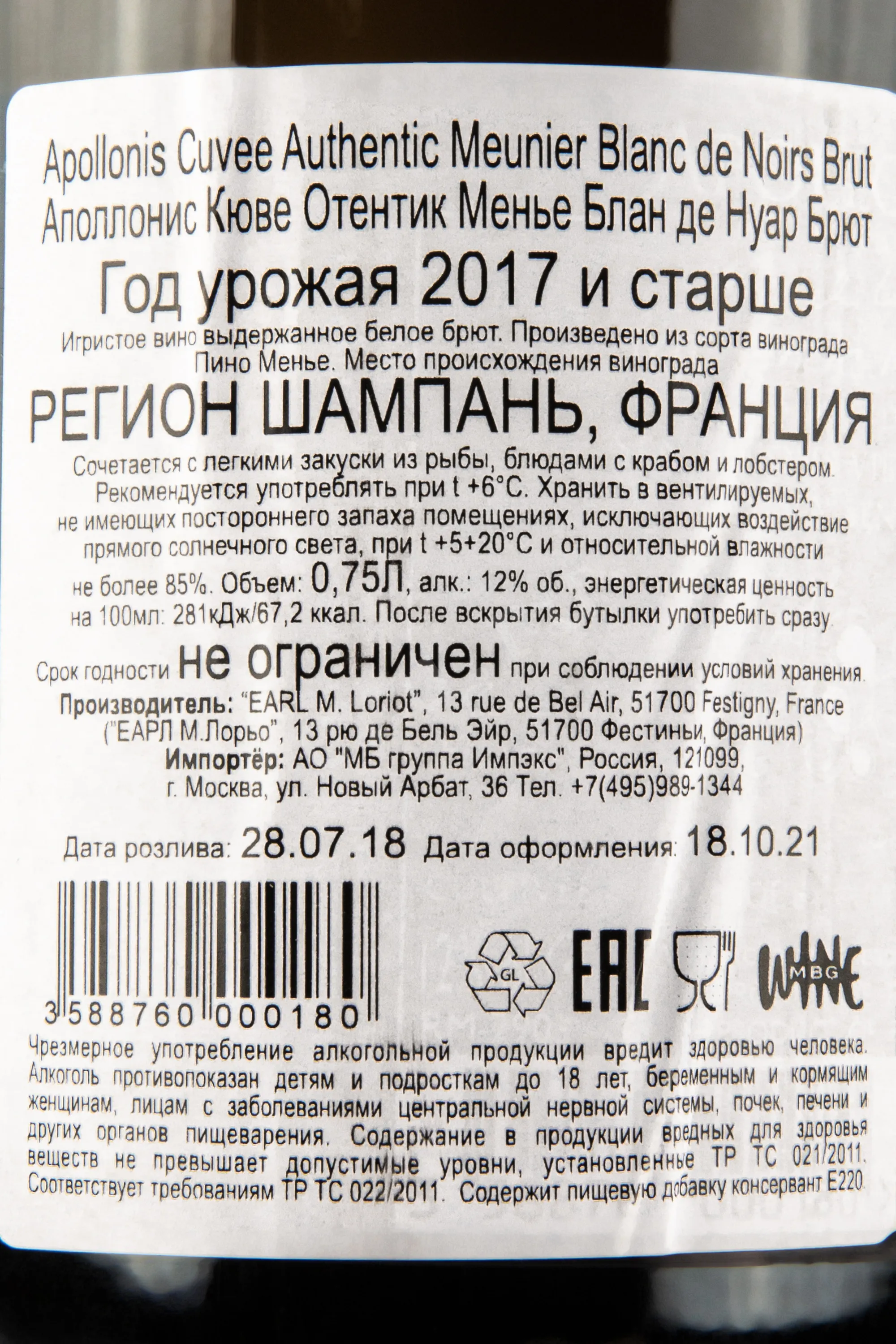Apollonis Cuvee Authentic Meunier 2020 0.75 л купить - шампанское Аполлонис Кюве Отентик Менье цена в магазине КРЮ ПРОФИ г. Москва, ул. Профсоюзная, д. 16/10 10:00-22:00 Ежедневно +7 (495) 920-20-02 info@cru.ru