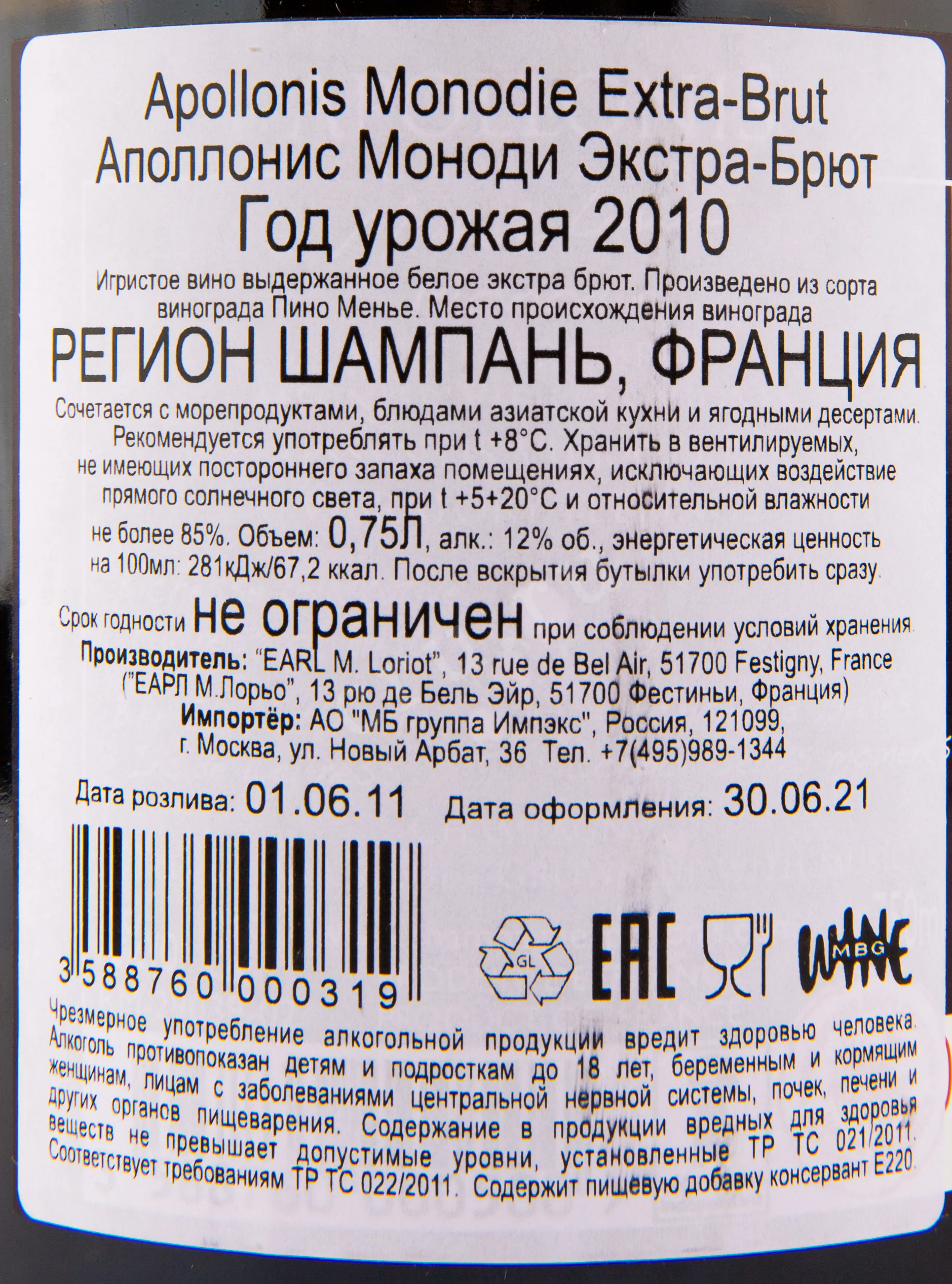 Apollonis Monodie 0.75 л купить - шампанское Аполлонис Моноди цена в магазине КРЮ ПРОФИ г. Москва, ул. Профсоюзная, д. 16/10 10:00-22:00 Ежедневно +7 (495) 920-20-02 info@cru.ru