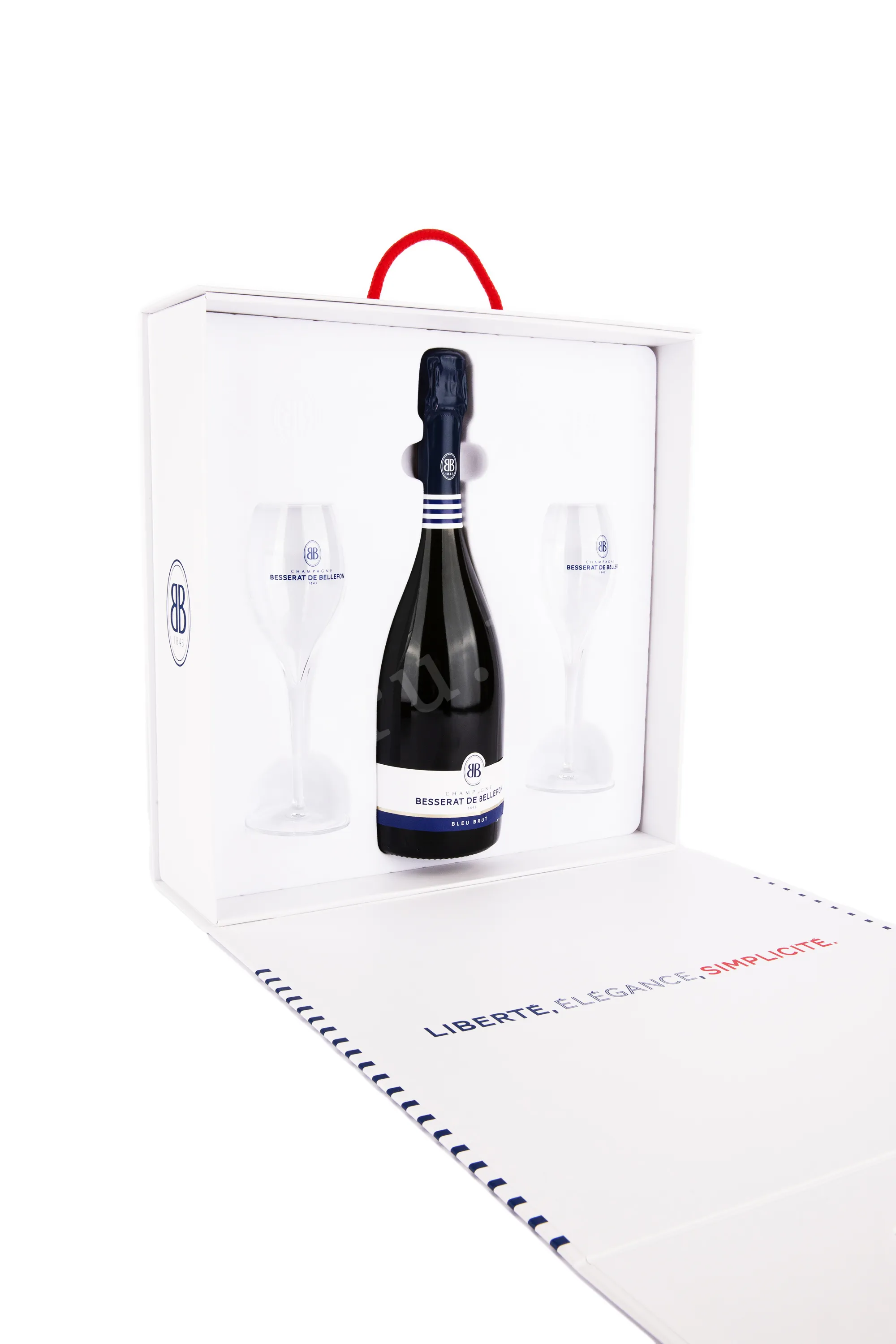 Besserat de Bellefon Blue Brut in box with 2 glasses 0.75 л купить - шампанское Бессера де Бельфон Блю Брют в коробке с 2 бокалами цена в магазине КРЮ ПРОФИ г. Москва, ул. Профсоюзная, д. 16/10 10:00-22:00 Ежедневно +7 (495) 920-20-02 info@cru.ru
