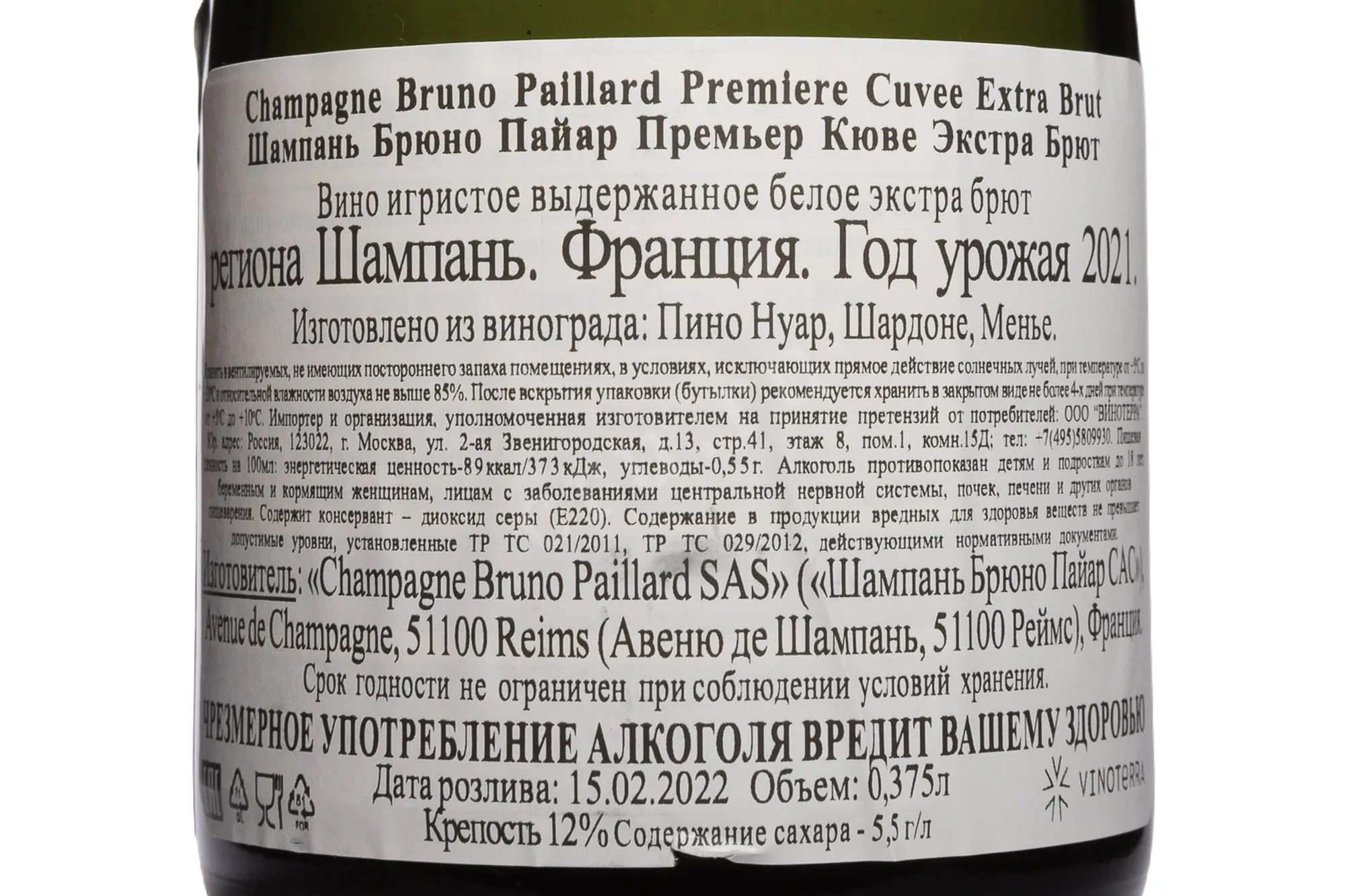 Шампанское белое экстра-брют Bruno Paillard Premiere Cuvee Extra Brut 2021 г. 0,375 л сделано в стиле, который подчёркивает чистоту сырья и терруара. Напиток винифицирован на основе урожая 2021 года с добавлением резервных вин предыдущих лет, что соответствует философии производителя. Виноград собрали с разных участков Шампани, преимущественно с меловыми почвами, обеспечивающими высокую кислотность и точность вкуса. Алкогольная ферментация проходила в ёмкостях из нержавеющей стали. Малолактика, согласно практике хозяйства, блокировалась для сохранения свежести, а выдержка на осадке после вторичного брожения в бутылках по методу шампенуаз, заняла не менее трёх лет. Минимальный дозаж позволил сформировать сухой, строгий стиль. Мини-формат рассчитан на индивидуальную подачу и может стать интересным презентом для коллекционеров алкоминималистики.