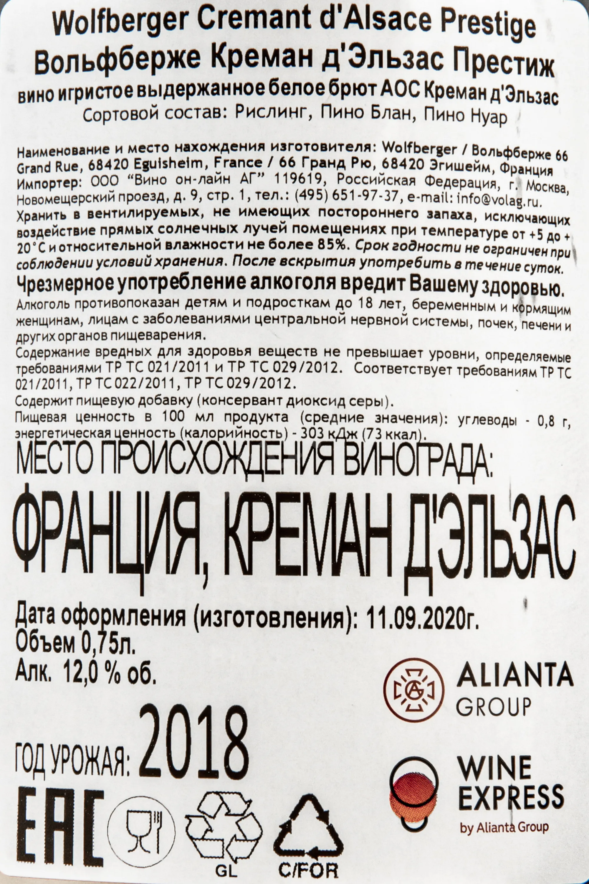Креман д'Эльзас Престиж Вольфберже 2018 0.75