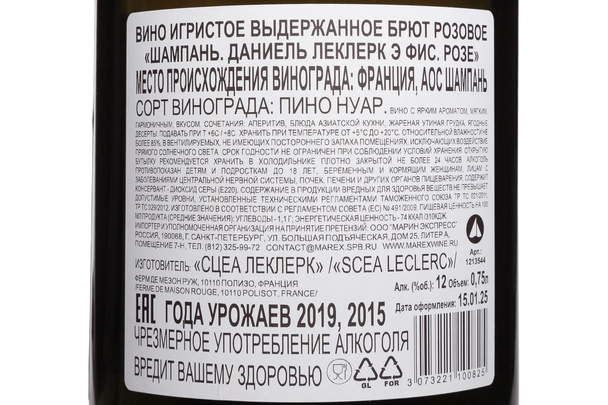 Шампанское розовое брют Daniel Leclerc et Fils Rose 2019 г. 0,75 л — винтажное розовое игристое от семейного хозяйства в коммуне Кумьер в долине Марны. Дом относится к категории récoltant-manipulant и использует виноград исключительно с собственных участков, что позволяет точно контролировать стиль и качество напитков. Розовая версия создана классическим способом повторной ферментации в бутылках с добавлением небольшого количества тихого красного вина в базовый ассамбляж, что обеспечивает стабильный цвет и фруктовую направленность. Урожай 2019 года отражает характер сезона и подчёркивает свежесть и чистоту сорта. Миллезим вышел тиражом 8500 бутылок.