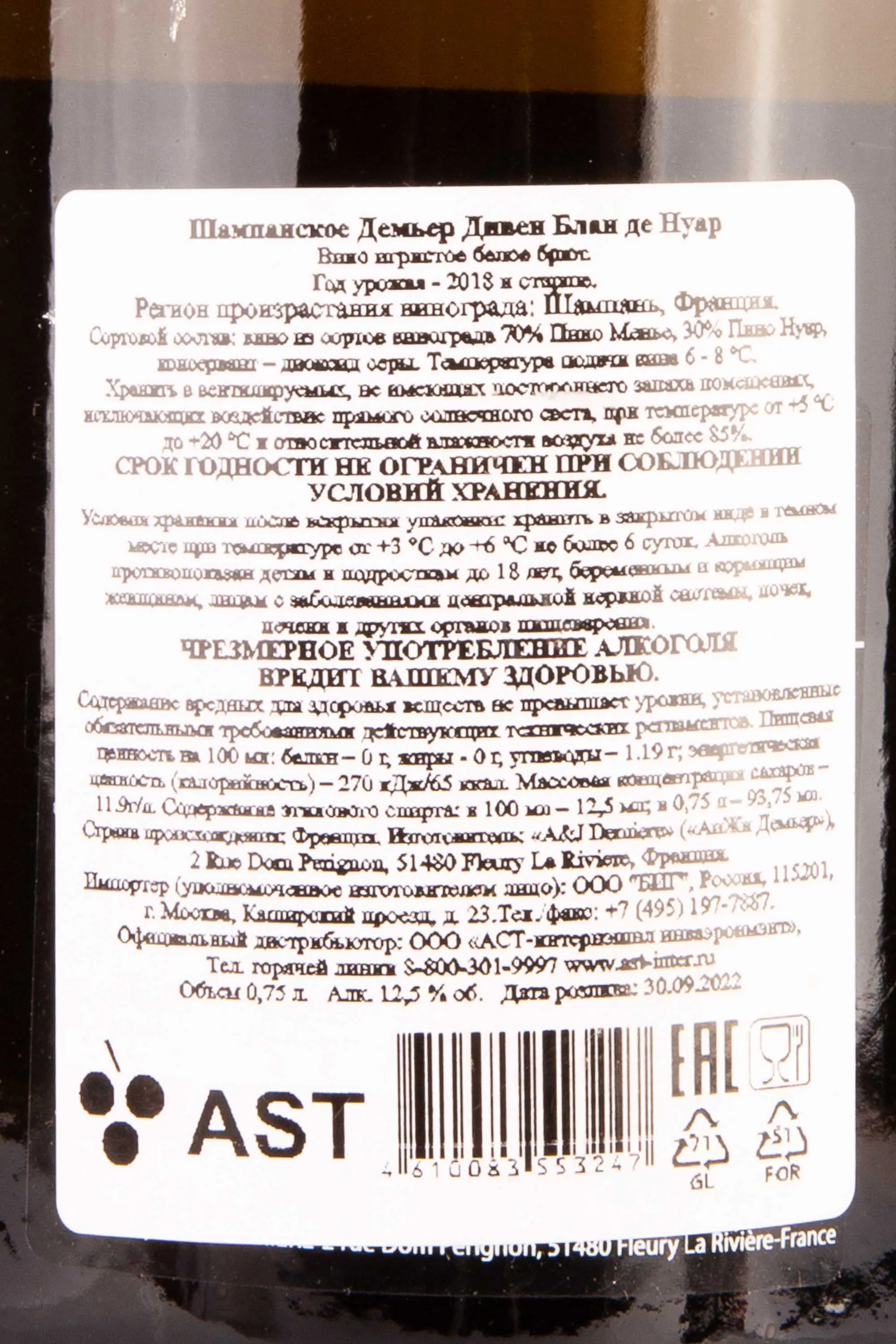 Demiere Divin Blanc de Noirs Brut 0.75 л купить - шампанское Демьер Дивен Блан де Нуар цена в магазине КРЮ ПРОФИ г. Москва, ул. Профсоюзная, д. 16/10 10:00-22:00 Ежедневно +7 (495) 920-20-02 info@cru.ru